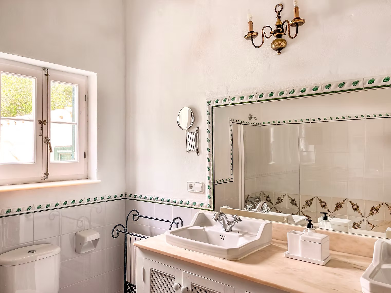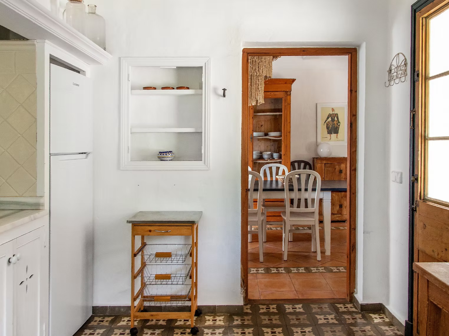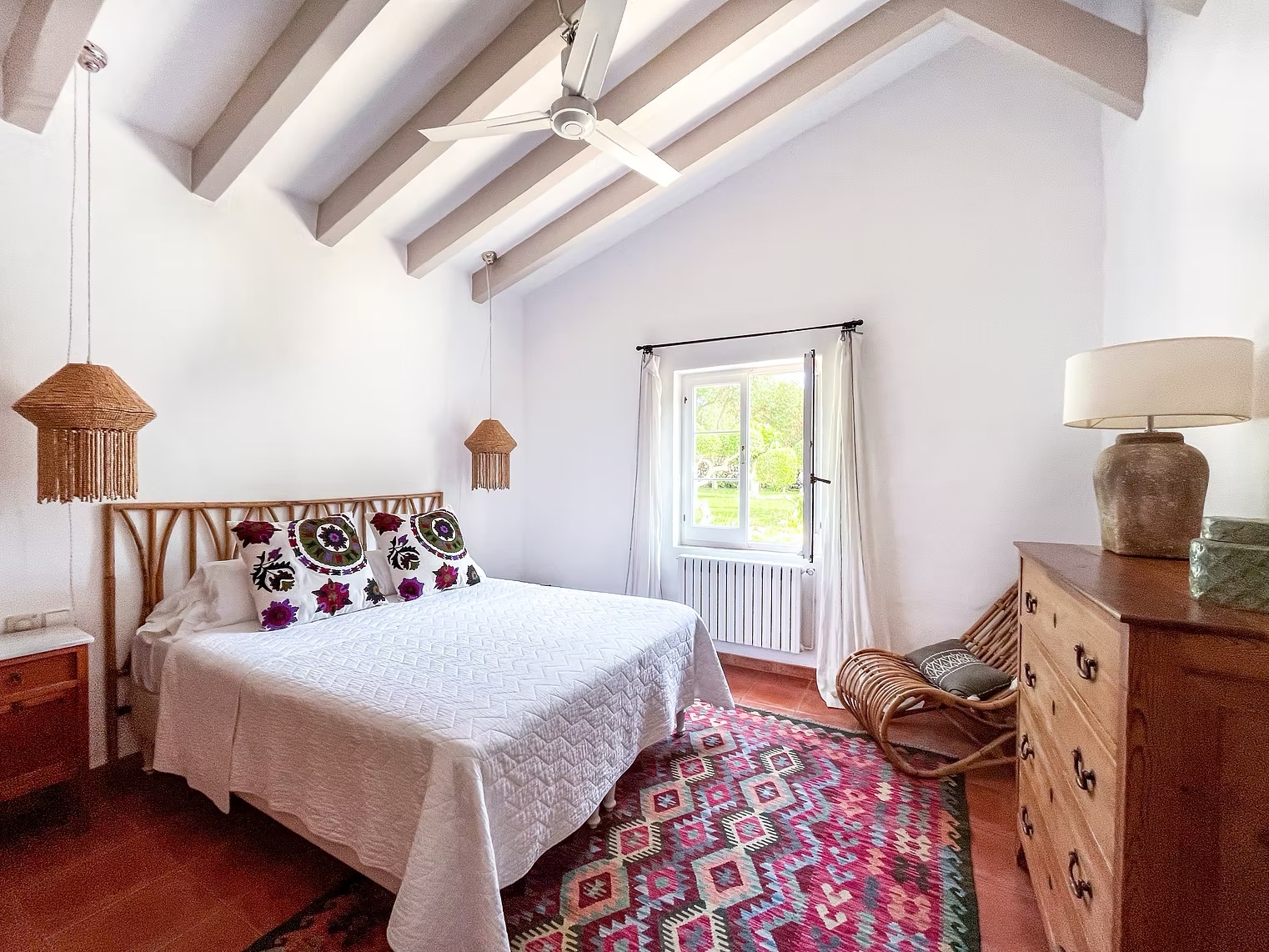 Here is a typically Menorcan house set in the rural area of S’Uestrá / Binidalí, close to the village of Sant Lluís, where you’ll find shops, bars, restaurants, banks and a pharmacy. The beaches of Binibeca and Binissafúller are about a five-minute drive away.