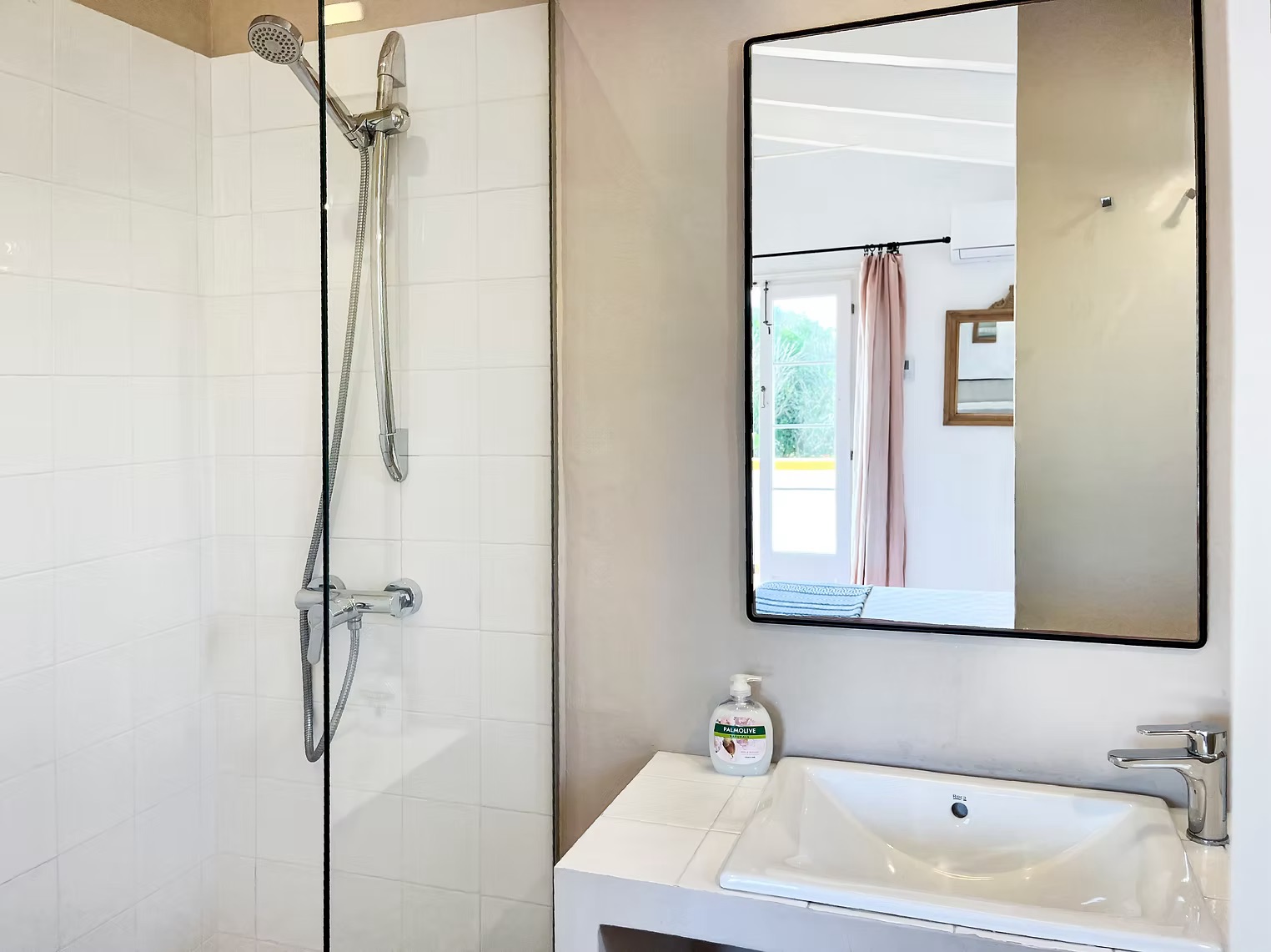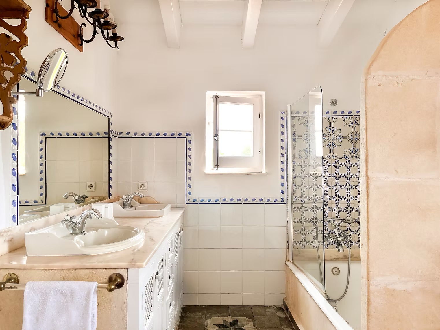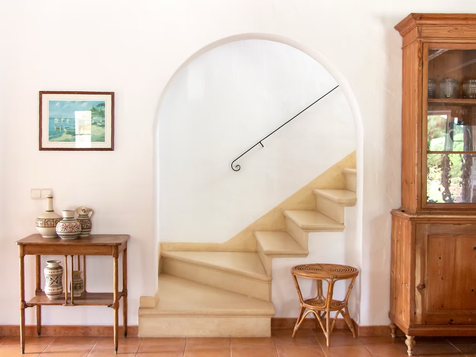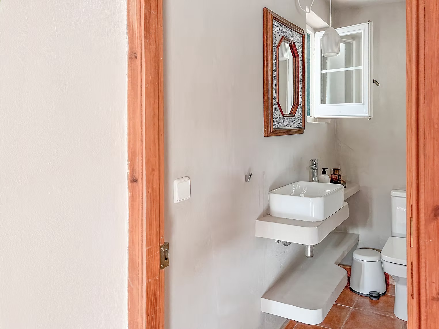 Here is a typically Menorcan house set in the rural area of S’Uestrá / Binidalí, close to the village of Sant Lluís, where you’ll find shops, bars, restaurants, banks and a pharmacy. The beaches of Binibeca and Binissafúller are about a five-minute drive away.