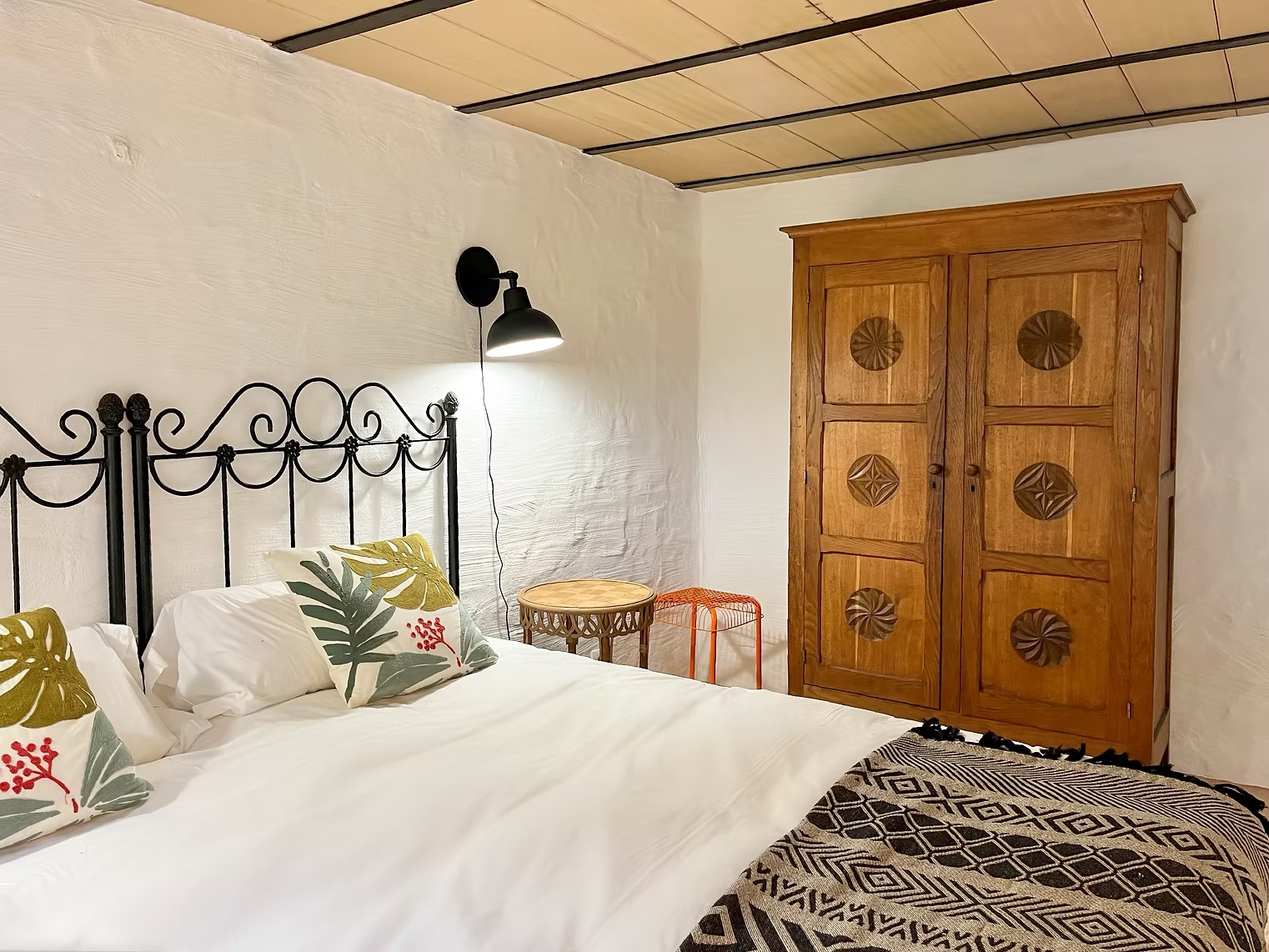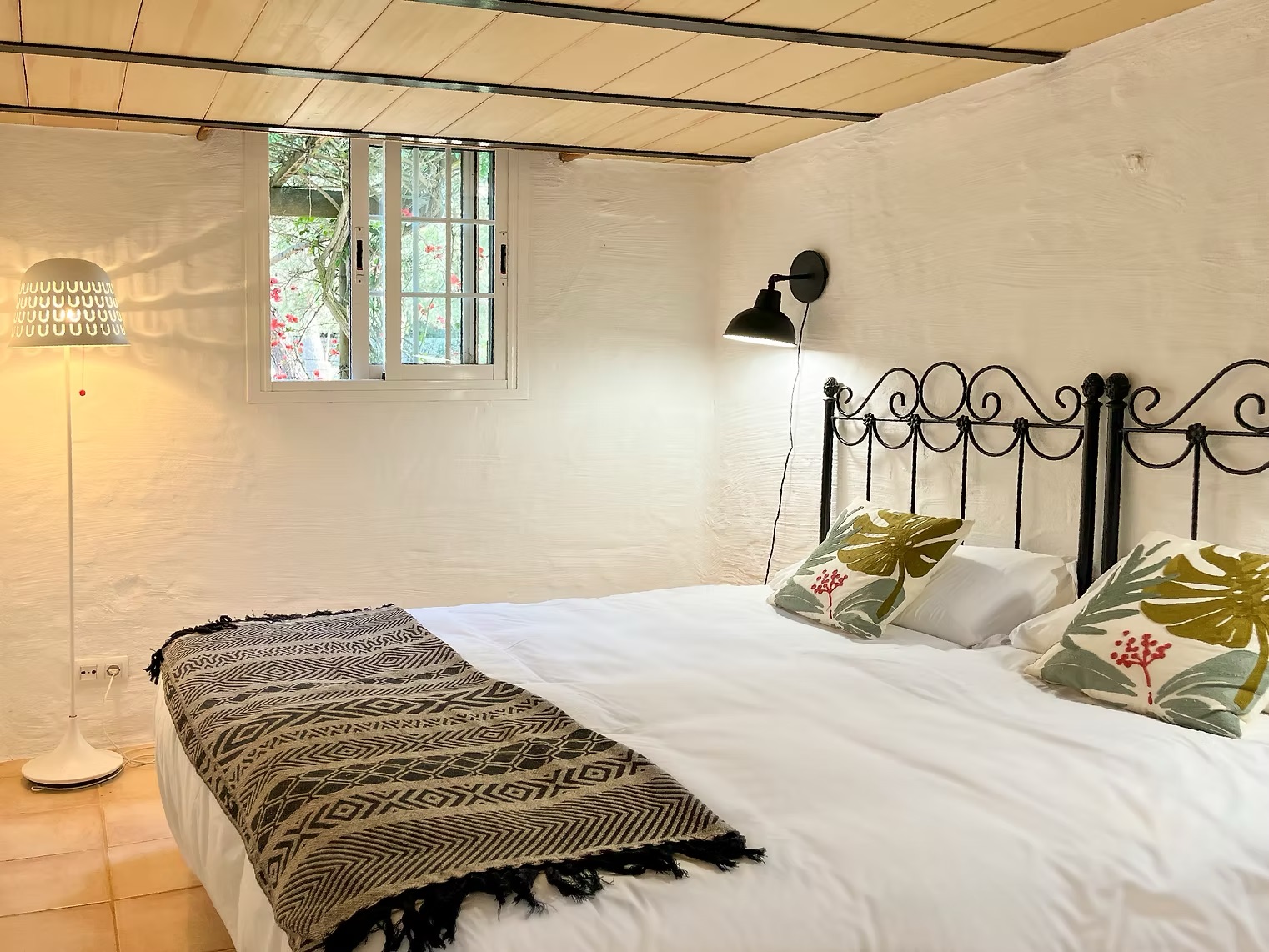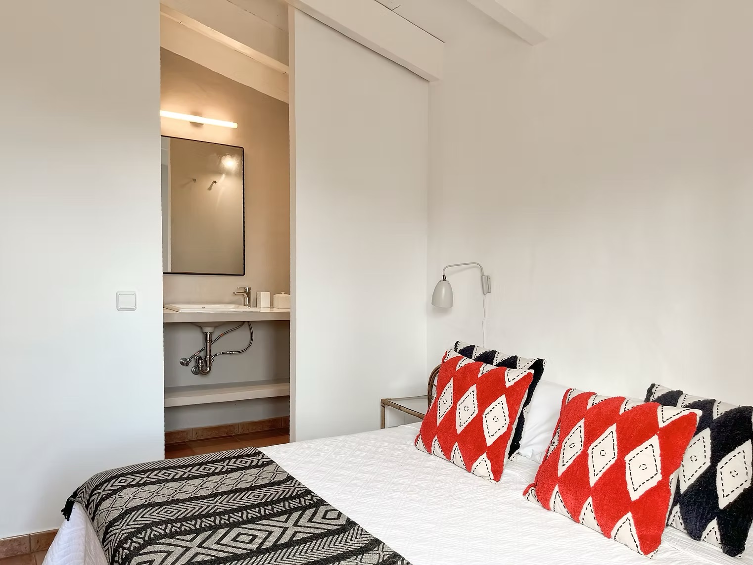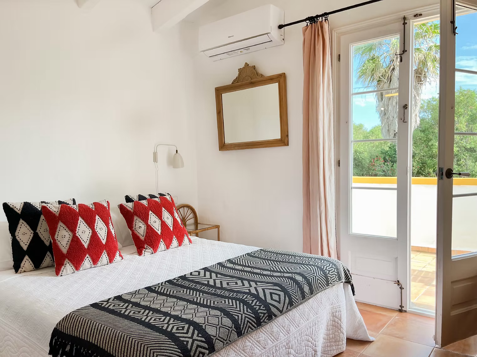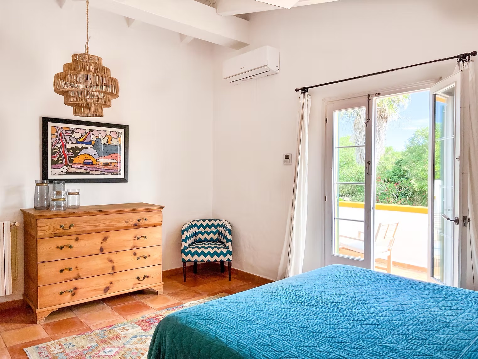 Double bedroom with 150 bed with air conditioning, terrace access, fans and Ensuite bathroom