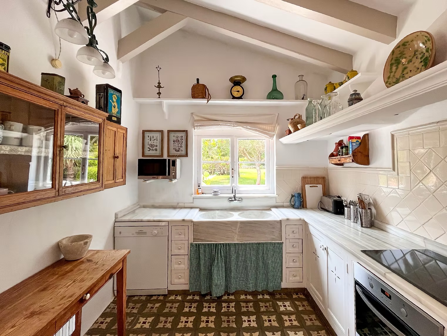 The interior has been designed with particular attention to detail, using traditional materials from the island, combining an old-world feel with modern comfort. The main house is arranged over two floors, and the property also includes a guesthouse with a living-bedroom area, kitchen and bathroom.