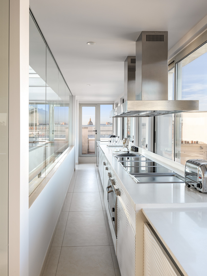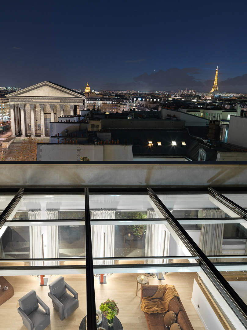 Attention les yeux ! difficile de se rendre compte de ce que représente ce triplex de 350 m2 perché au dessus de la place de la Madeleine avec vues à 360 °, jaccuzzi sur le toit, terrasse panoramique, et ses équipements ultra perfectionnés. Secret utlra bien gardé, cet appartement très confidentiel, est devenu la halte préférée des artistes les plus en vue, grâce à l’exclusivité qu’il a su cultiver. Les photos parlent d’elles mêmes, mais ne rendent pas tout à fait justice, comme disent les américains qui le découvrent en y arrivant. Probablement le seul appartement de PARIS à pouvoir rivaliser avec les plus belles suites des palaces parisiens.
