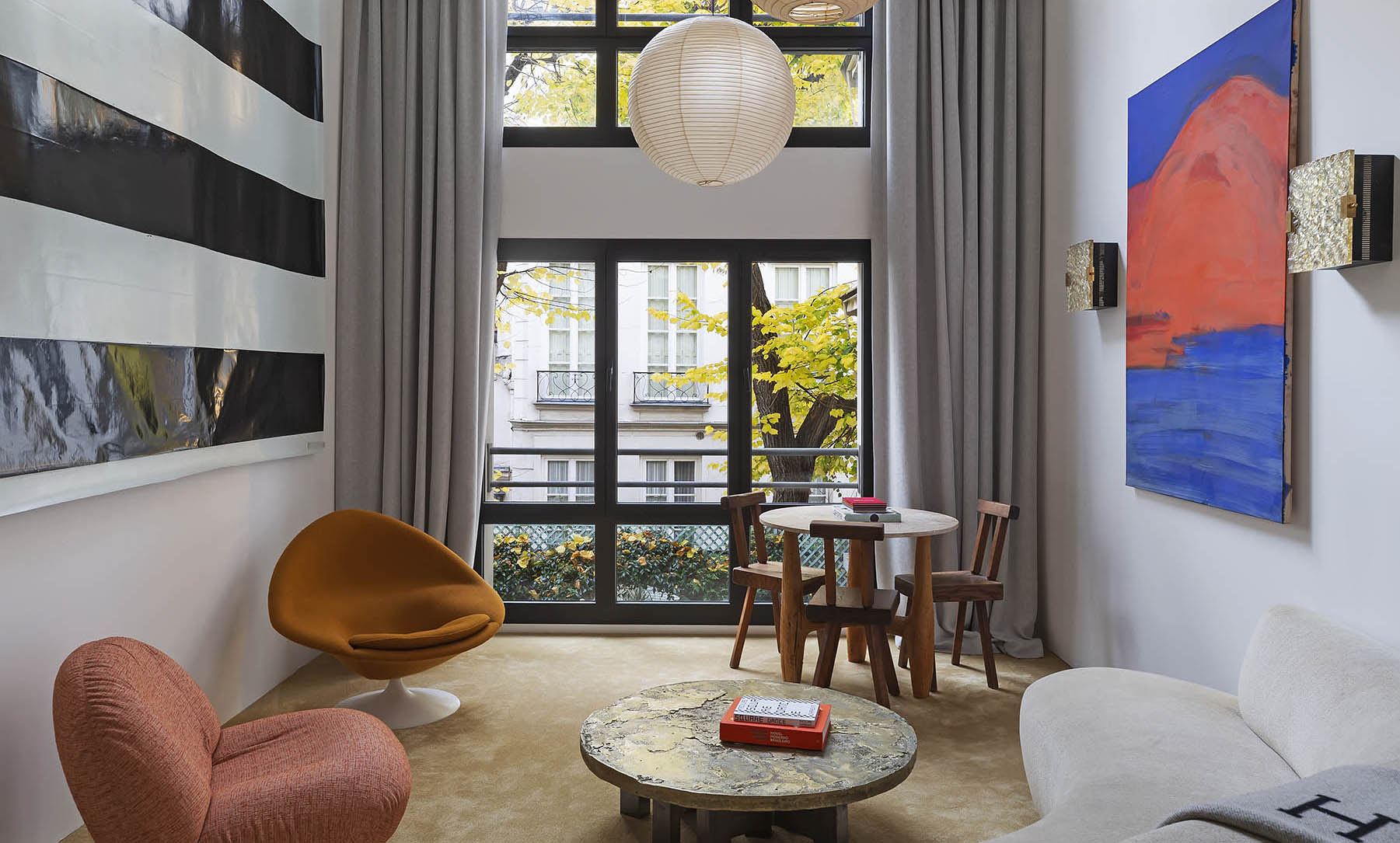 Au premier étage avec ascenseur d’un magnifique immeuble des années 30, ravissant ancien atelier d’artiste de -75M2 reconverti en appartement deux chambres exposé à l’ouest.
