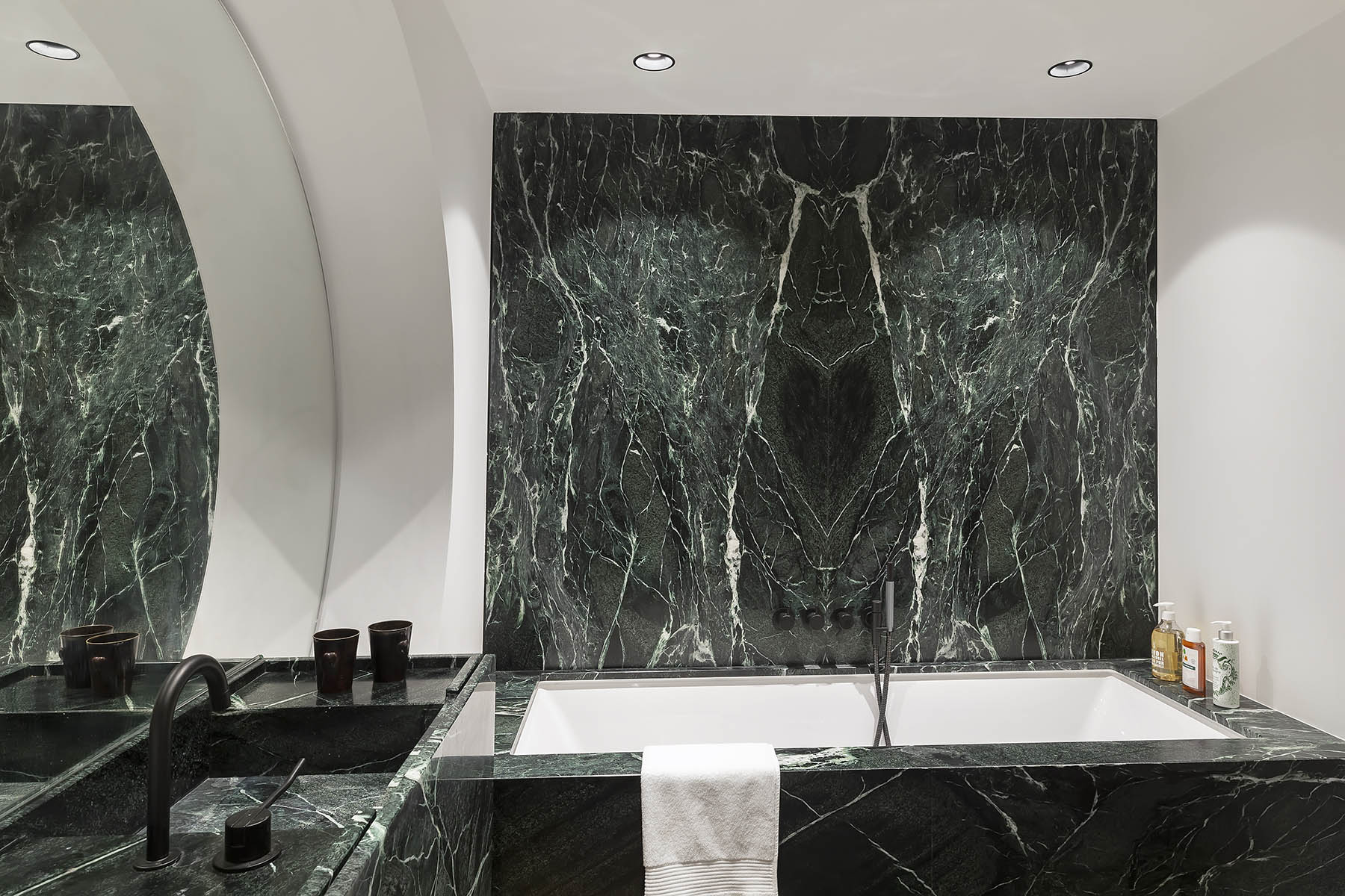 Chaque chambre et sa salle de bain disposent d’un chauffage par le sol et les chambres sont climatisées.