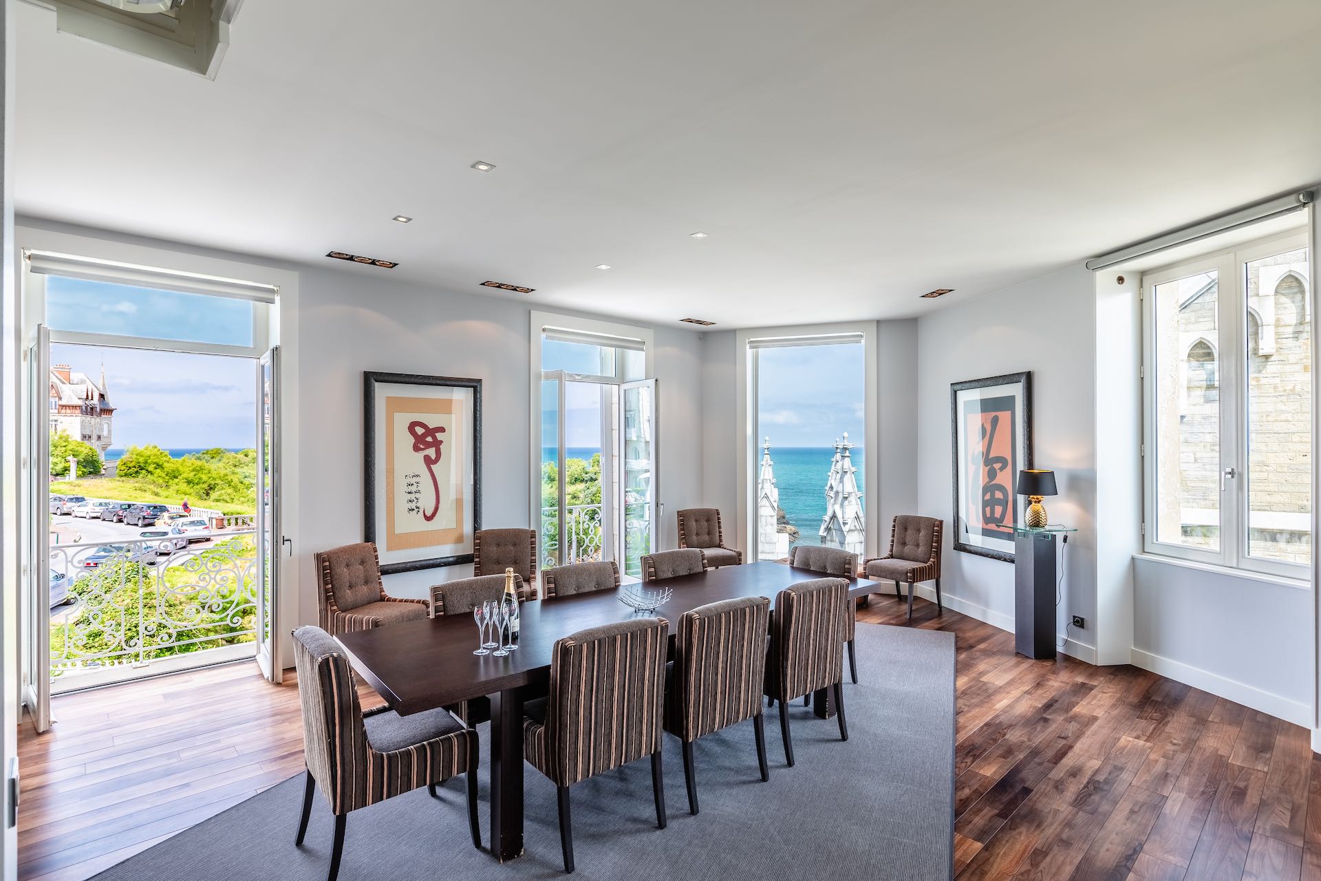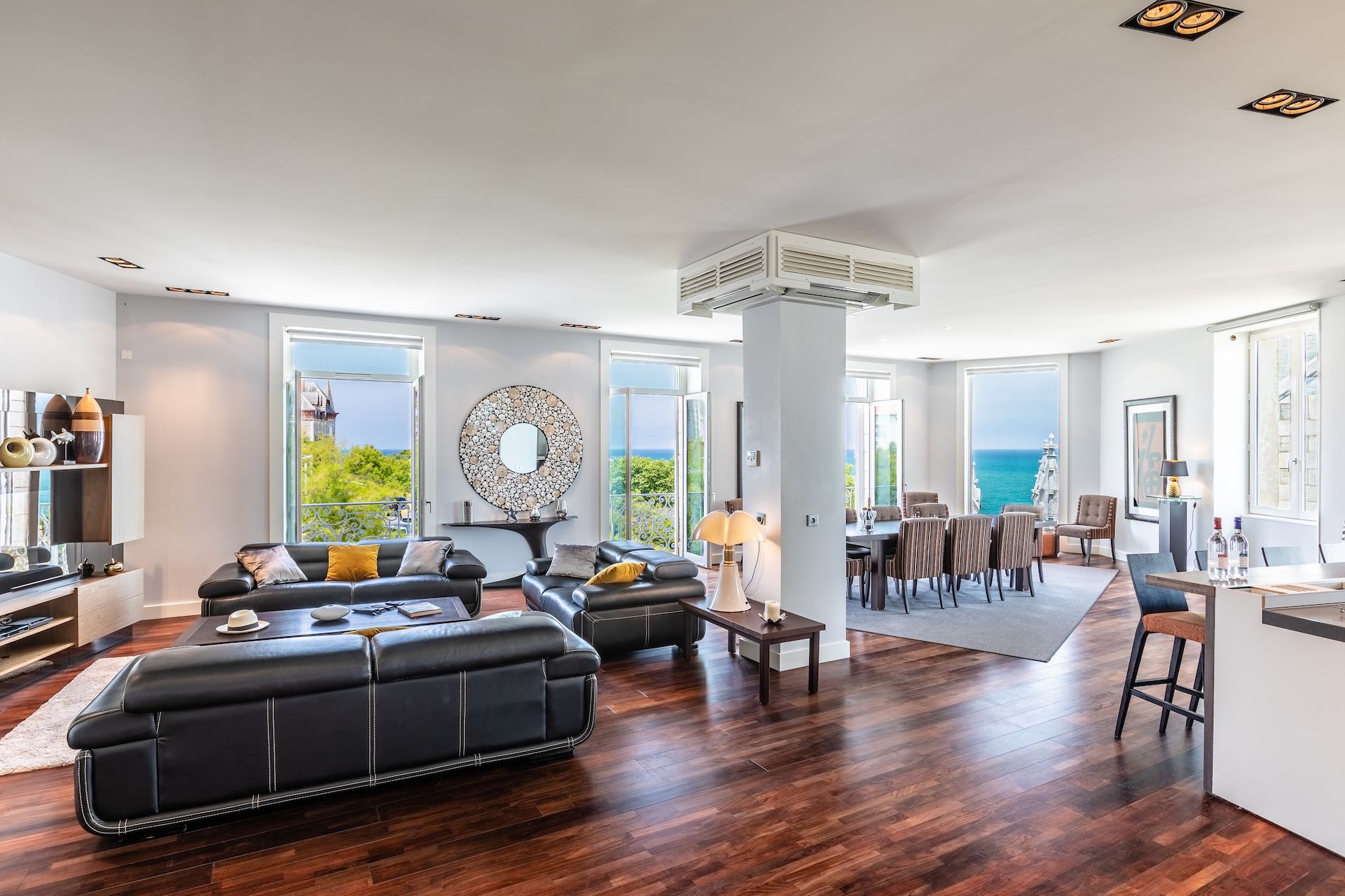 Magnifique appartement de 220 m2 non loin du centre ville de Biarritz et disposant d’une superbe vue sur l’océan. Les intérieurs, notamment la pièce de vie principale avec sa belle hauteur sous plafond, sont spacieux et lumineux, et décorés avec beaucoup d’élégance.