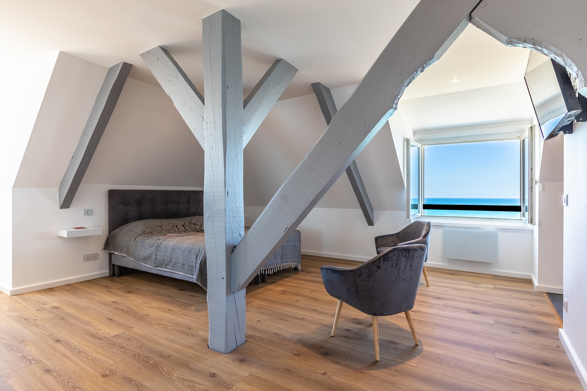 Chambre à lits jumeaux (3) mansardée, vue sur l’océan et le phare