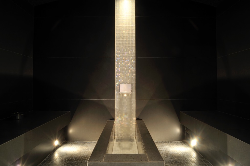 Salon de 100 m2 avec très grande hauteur de plafond et 3 tables de jeux avec cheminée