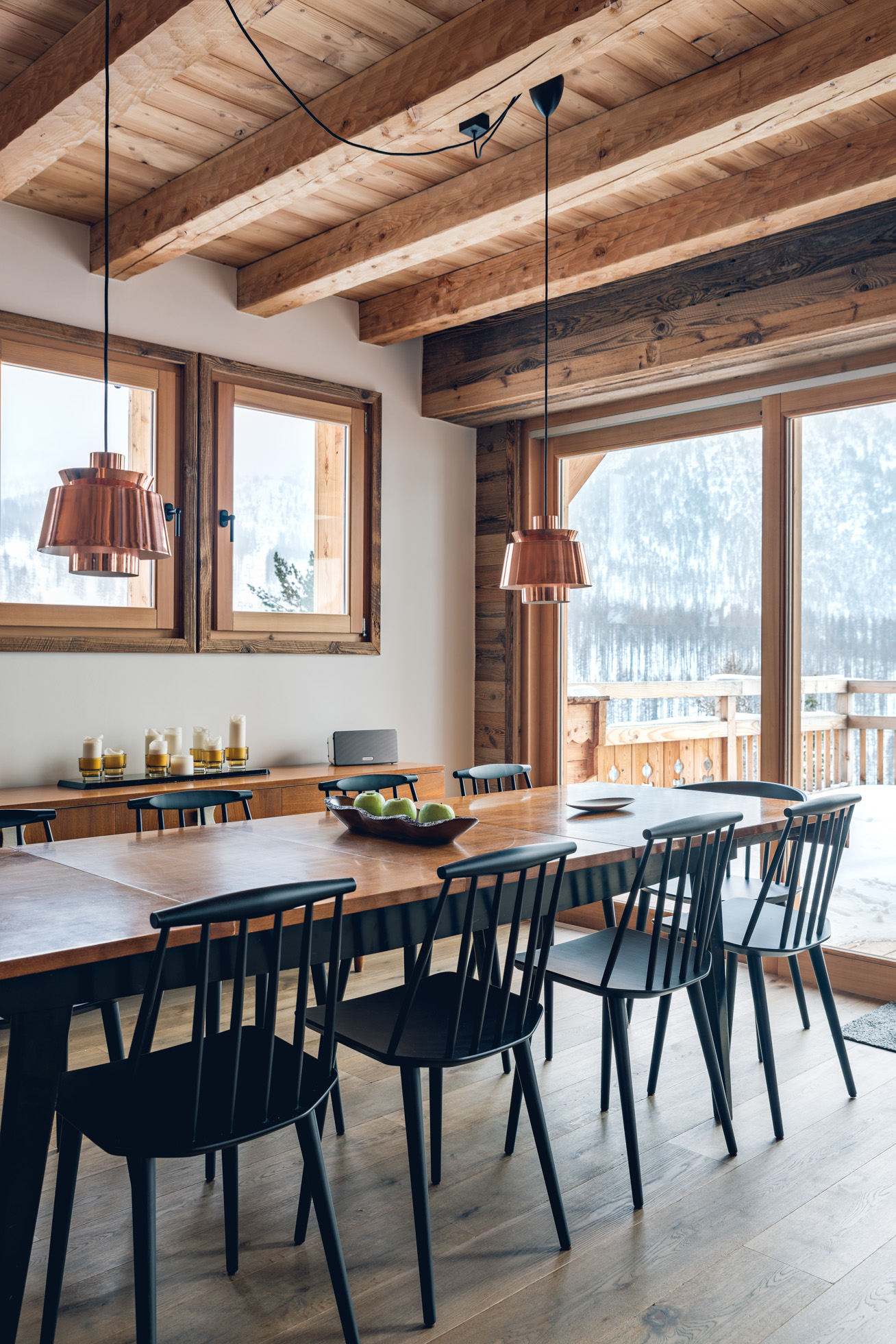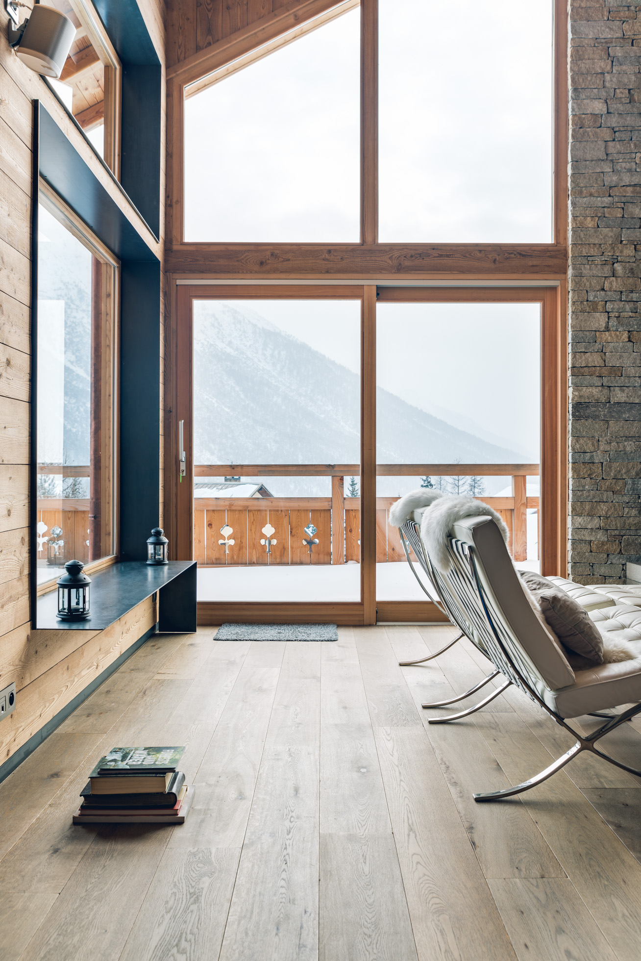 Chalet récent situé à proximité de la frontière franco-italienne, à Montgenevre. Il bénéficie des avantages d’une construction contemporaine : de très grandes ouvertures qui remplissent de soleil les pièces à vivre, et de beaux volumes pour les chambres. De nobles matériaux, travaillés par des artisans du cru, apportent aux lieux de l’élégance et une luminosité épurée.