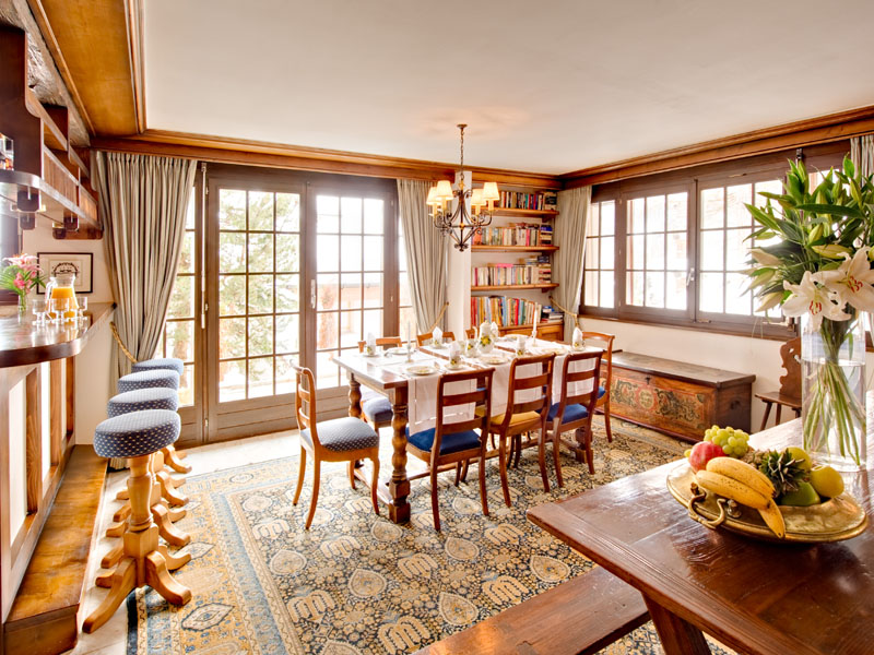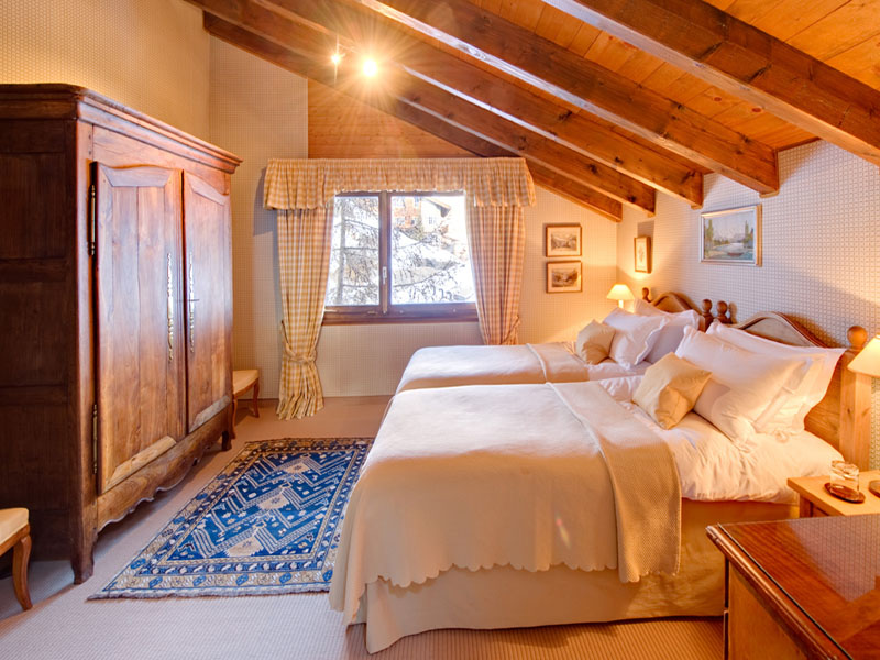 Zermatt dispose d'une belle variété de biens de qualité à la location saisonnière. Le plus souvent ce sont des appartements, les chalets se font plus rares vous avez donc là une des perles rares de la station. C'est une des plus belles demeures privées de Zermatt, elle offre une qualité de confort irréprochable combinée avec un excellent service. Situé dans un domaine privilégié regroupant quelques autres demeures, il est seulement à 100 mètres des télésièges du Schwarzsee et du Klein Matterhorn et cinq minutes à pieds du centre du village. Son aménagement intérieur combine avec succès les commodités modernes et le mobilier antique avec une ambiance très chic et cosy. Quatre spacieuses chambres avec chacune leurs salles de bain, un séjour confortable, une zone de détente, un ascenseur avec accès à chaque étage et le personnel à votre service - vous offrent un grand confort pour vos vacances dans cette station prisée des Alpes Suisses.