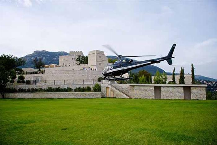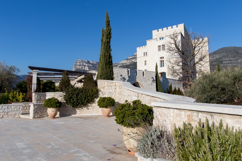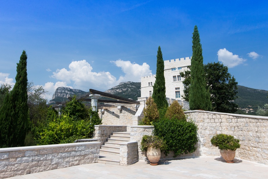 Ce château du XI° siècle était autrefois un fort de défense contre les attaques italiennes. Il fut plusieurs fois détruit, puis reconstruit, jusqu'à finalement devoir demeurer 150 ans à l'état de ruines. Heureusement, son propriétaire actuel a pu effectuer un travail de rénovation intégral, ramenant ce bâtiment historique à la vie, et ce, pour votre plus grand plaisir… Un peu plus de 6000 arbres agrémentent les parterres entourant le château, créant ainsi un jardin naturel, tandis que 4 terrasses aménagées offre des vues splendides sur la campagne, tout en étant l'endroit idéal pour les évènements. L'équipement moderne du château comblera aussi chacun de ses invités : 15 chambres, un pool house plus que confortable, gym et spa extérieurs, une capacité d'accueil de 800 personnes…