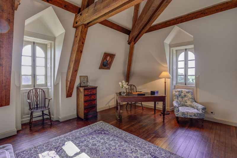 La partie donnée en location, l’aile sud construite au 19ième siècle, fait partie intégrante du château, qui se déploie sur 4 niveaux de 100m² chacun. Cet espace a été récemment rénové alliant le charme d'antan avec le confort moderne (chauffage géothermique, salle de bain, cuisine wifi et ascenseur). Vous aurez à votre disposition une vaste salle de séjour au rez-de-chaussée agrémentée d’une cheminée monumentale et cuisine attenante, 5 chambres doubles avec salle de bain privative et un home cinéma. Vous pourrez également bénéficier d’un service personnalisé si vous le souhaitez (guide, cuisinier, chauffeur). Vous aurez accès à l'ensemble du parc et au terrain de tennis.