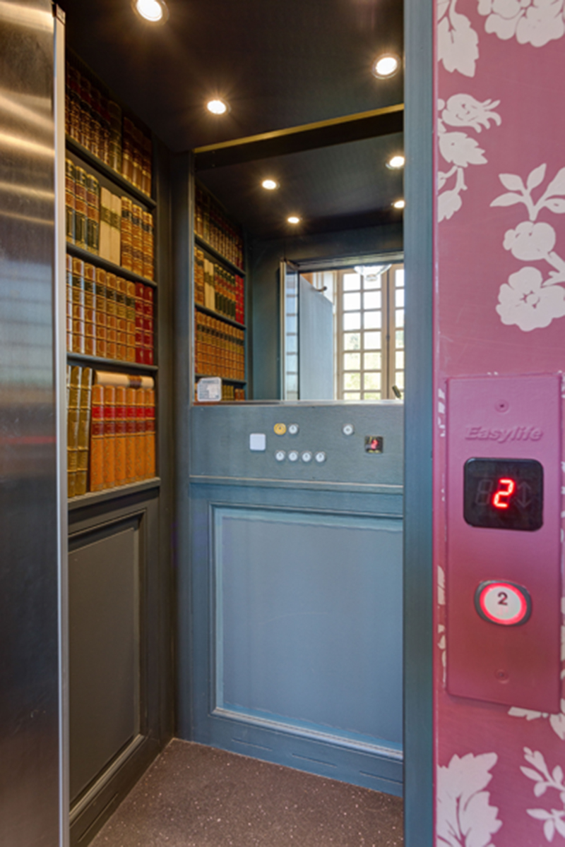Salon avec une grande cheminée de 16ième siècle avec ascenseur