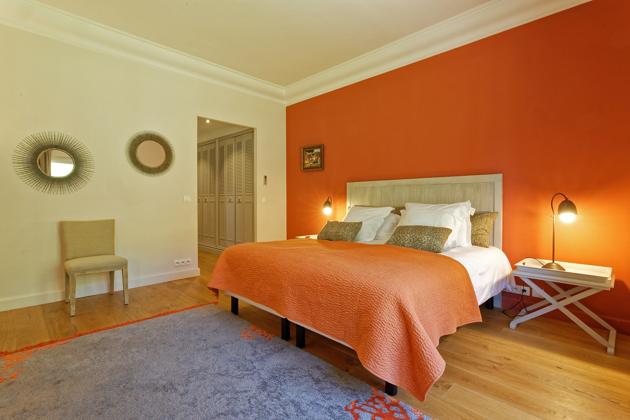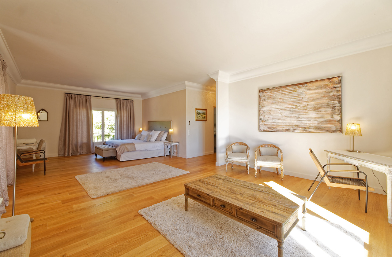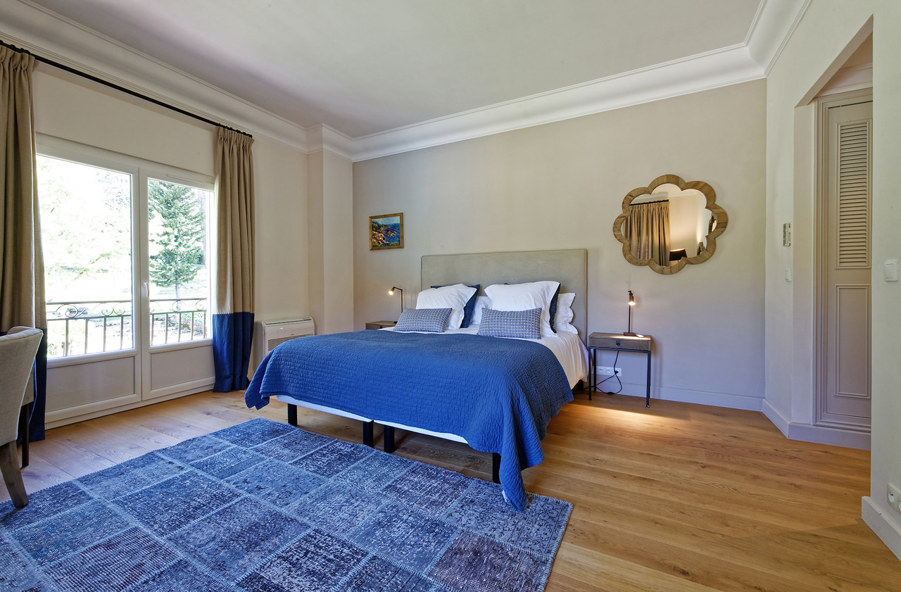 Chambre de Maître lit king-size avec balcon, dressing, télévision et Salle de bain en suite avec baignoire, douche et Chambre double avec télévision
