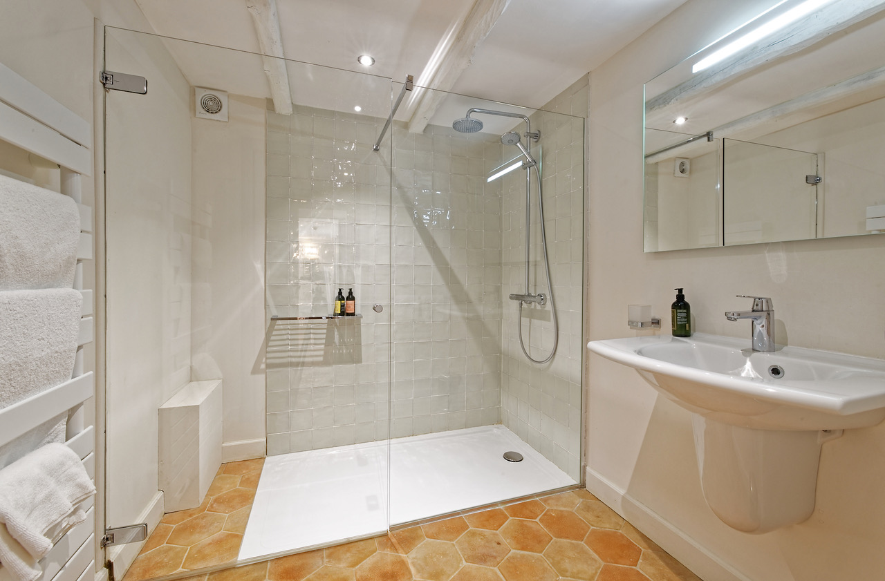 Chambre double avec télévision et Salle de bain en suite avec douche