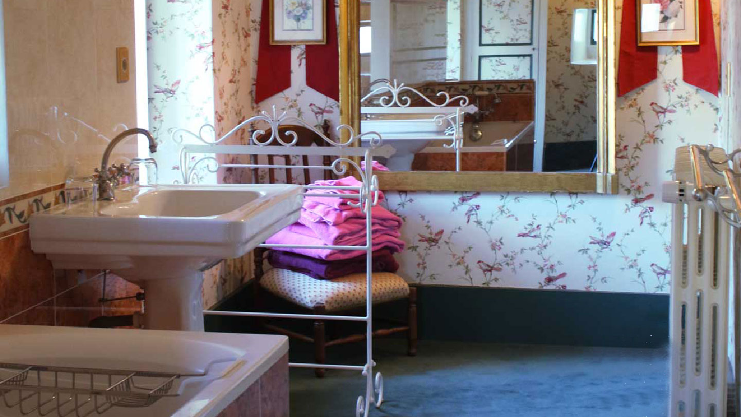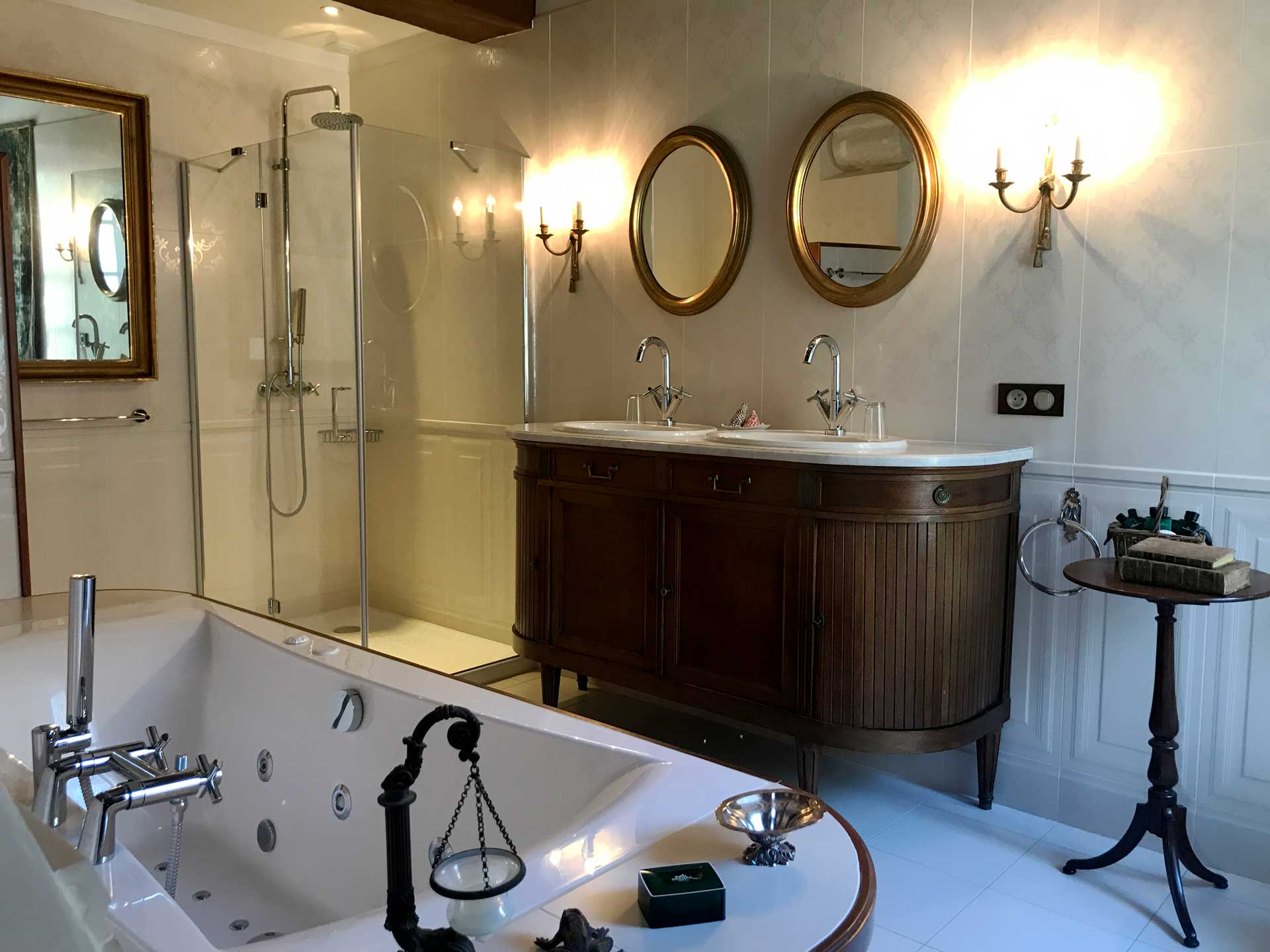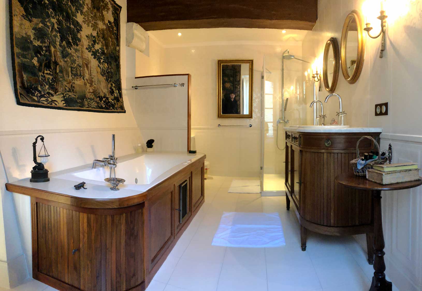Chambre double avec lit 180 et Salle de bain en suite avec wc, douche, baignoire