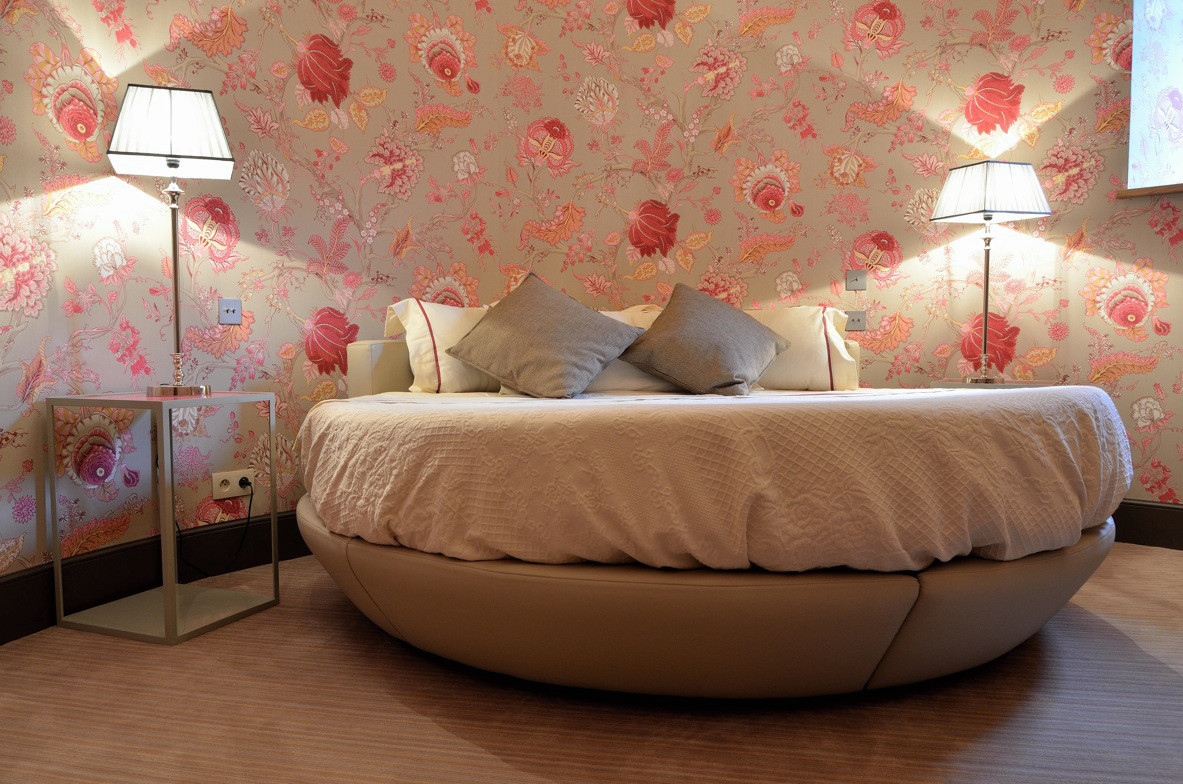 Chambre double avec coin salon et Salle de bain en suite avec lavabo double, douche, baignoire