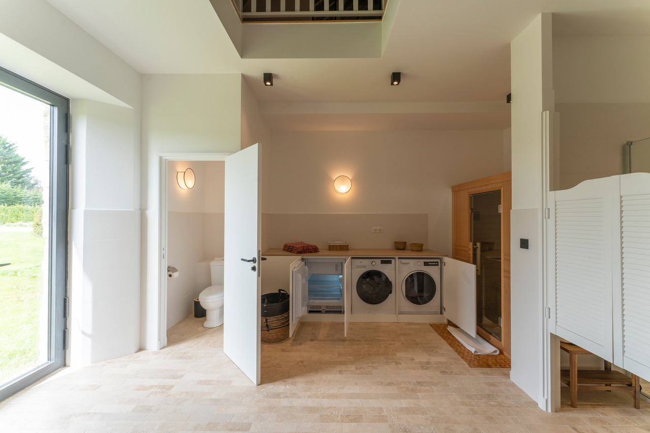 Buanderie avec sèche linge, lave linge