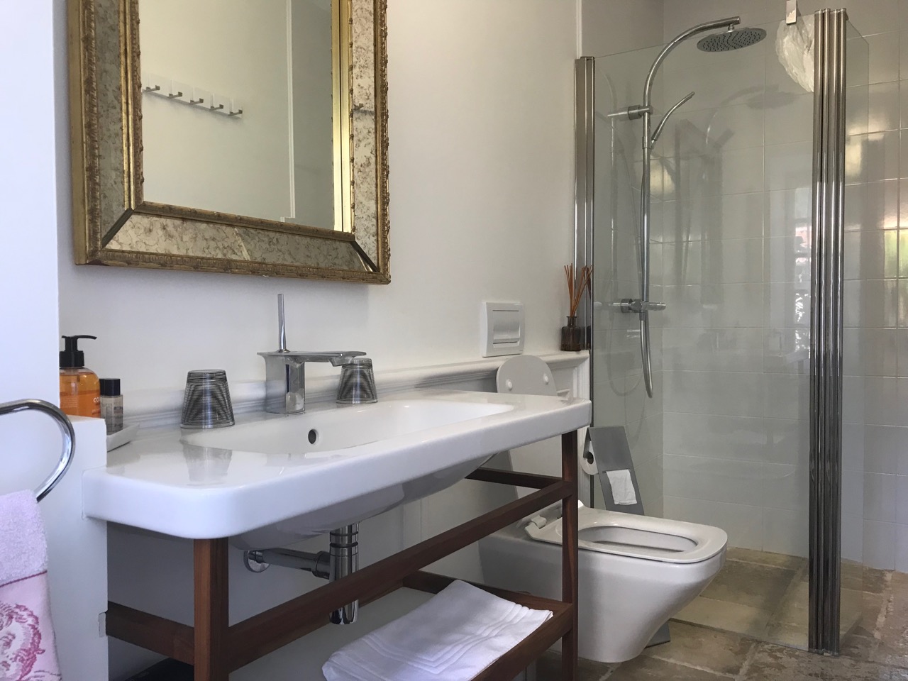 Chambre double 27 m2 avec lit 160, cheminée et Salle de bain en suite avec douche, wc