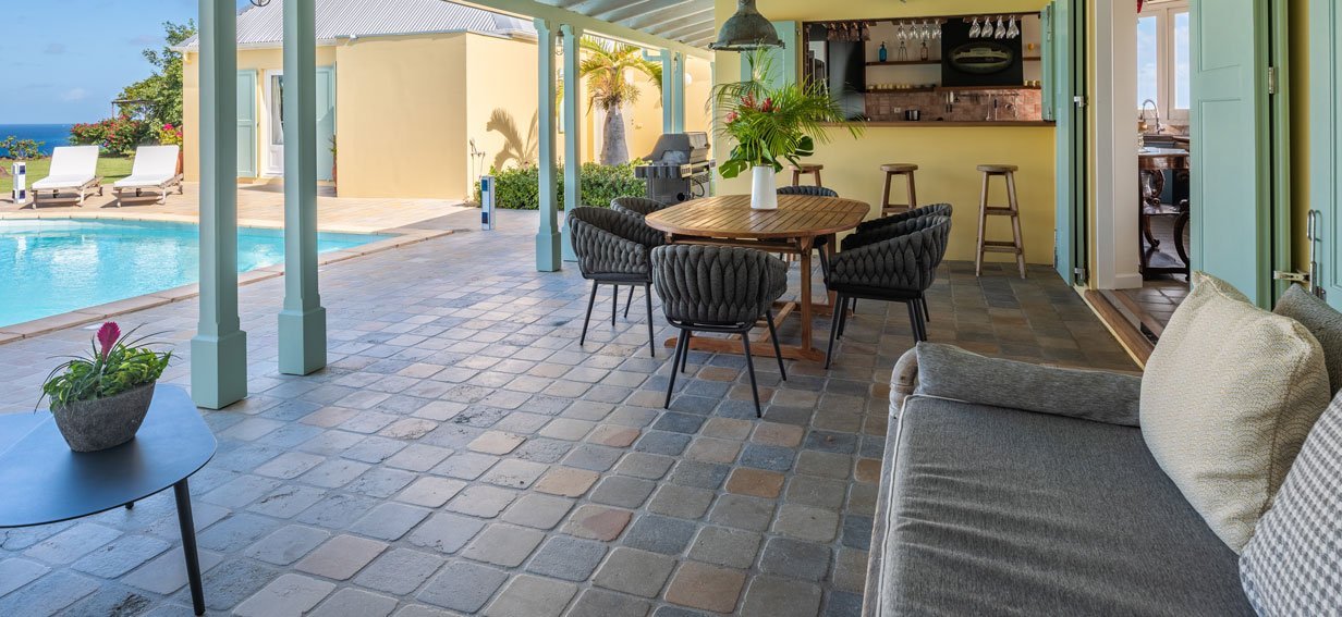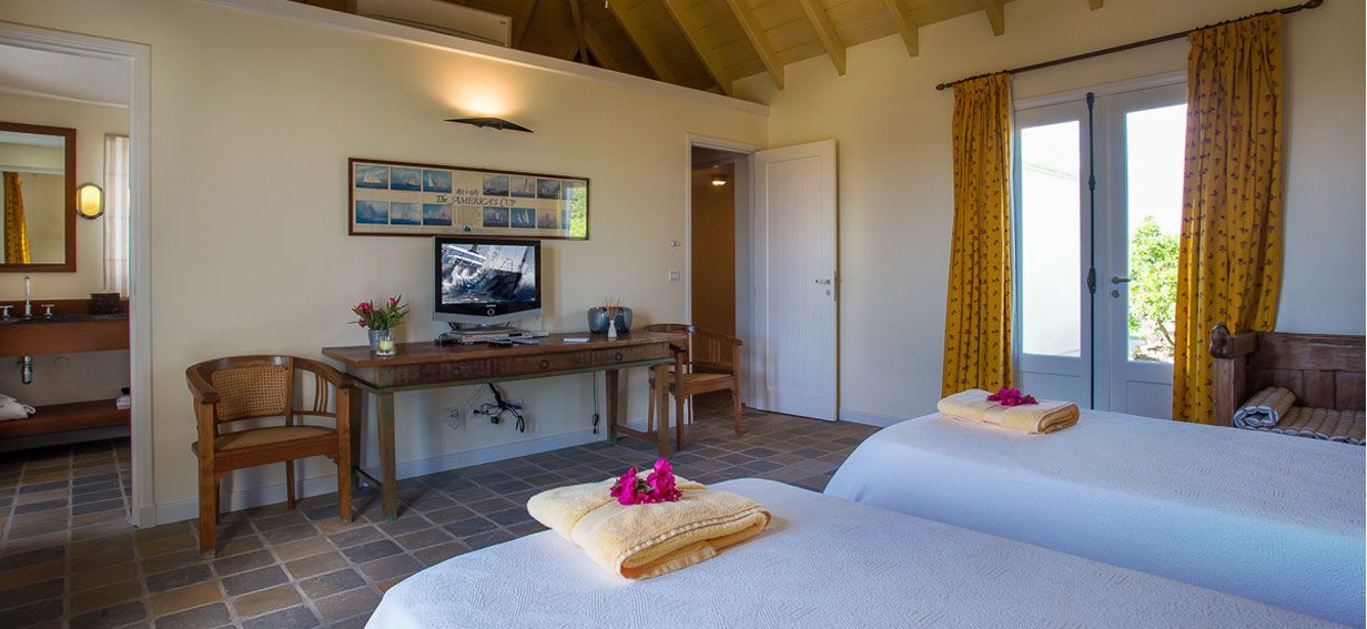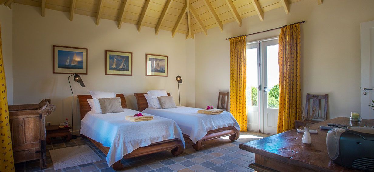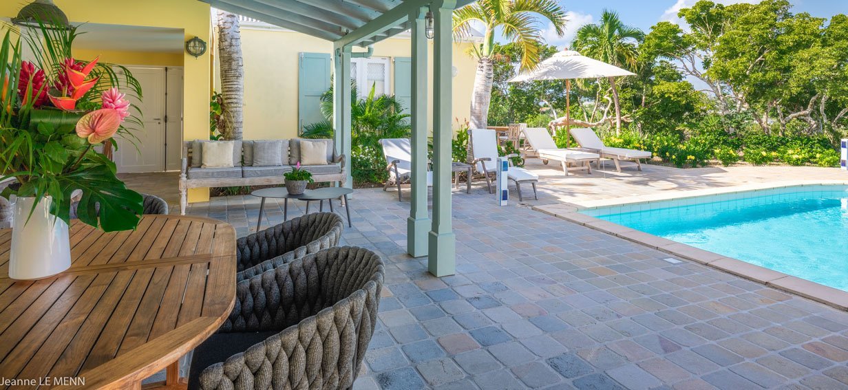 Une des seules maisons de Saint Barth, avec un petit peu de jardin plat. La maison aux extérieurs jaunes vous étonnera par la qualité des prestations offertes notamment dans les chambres.