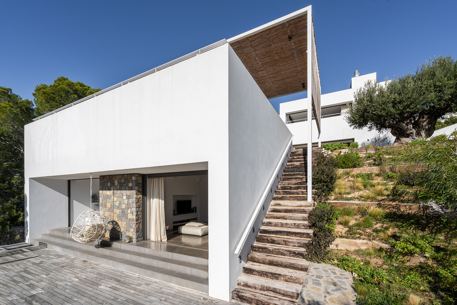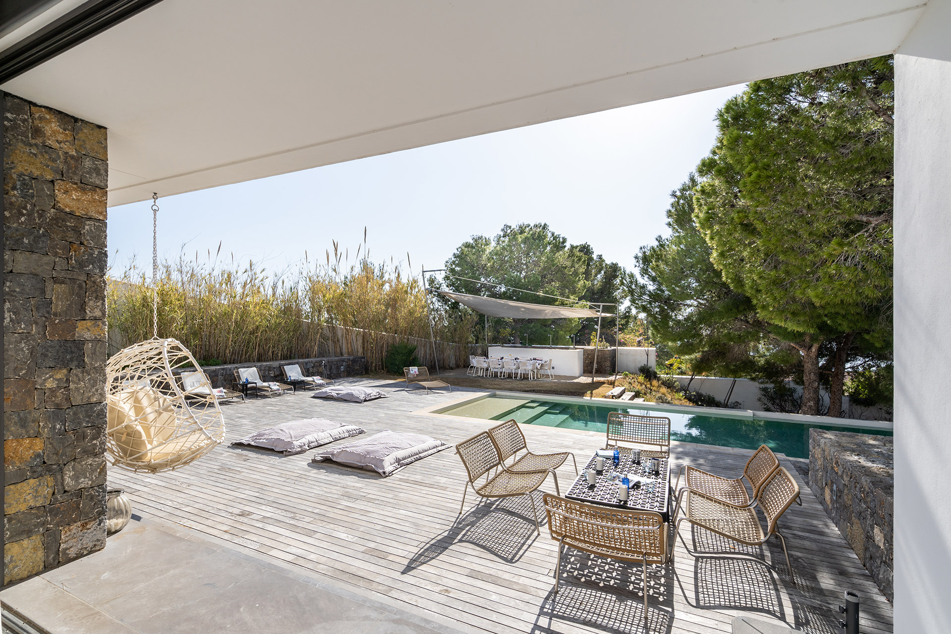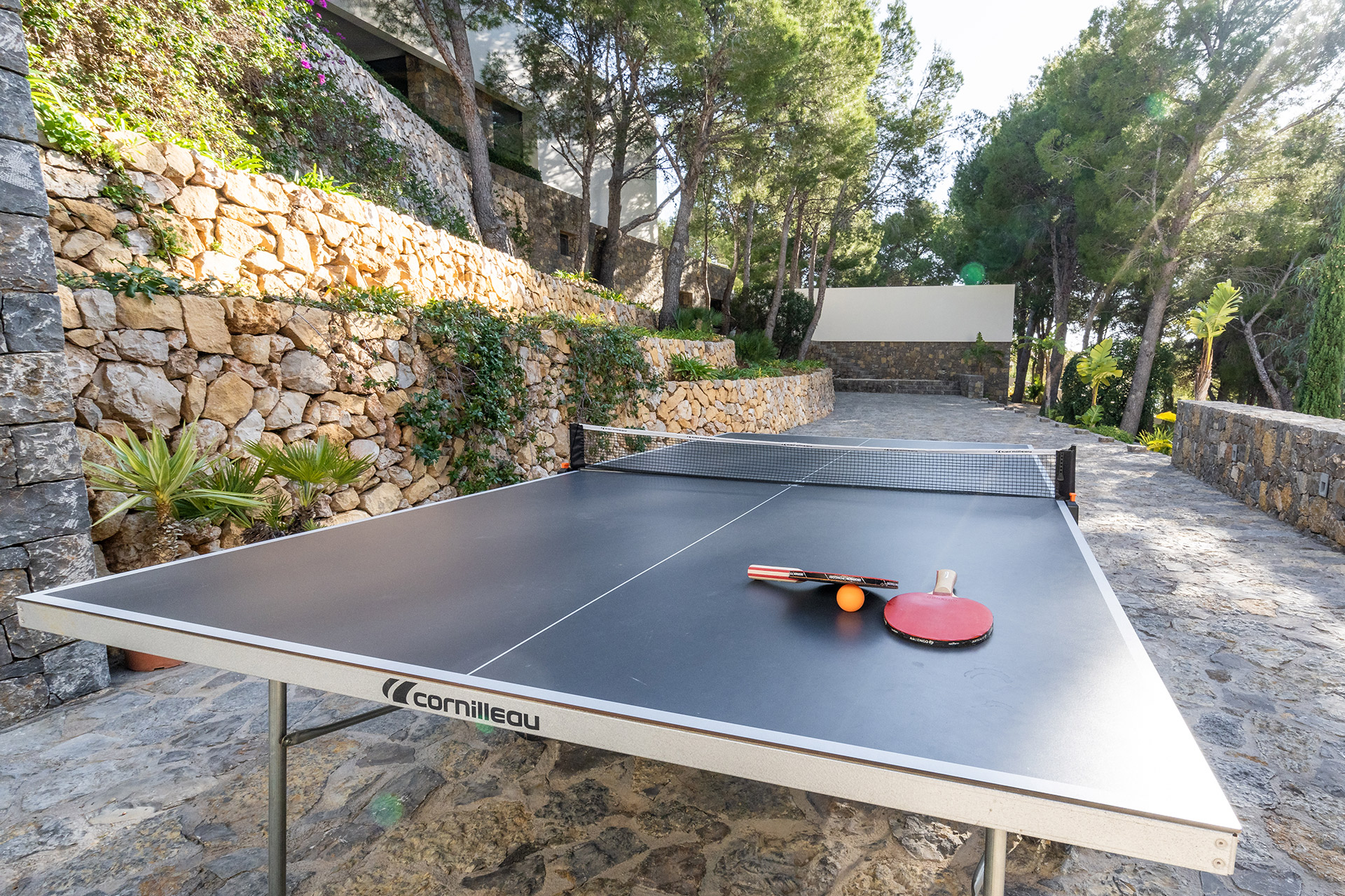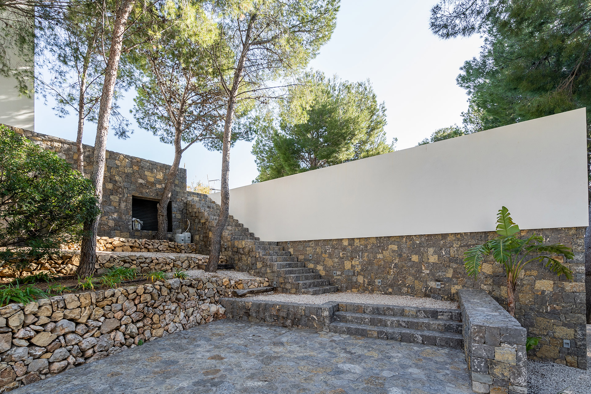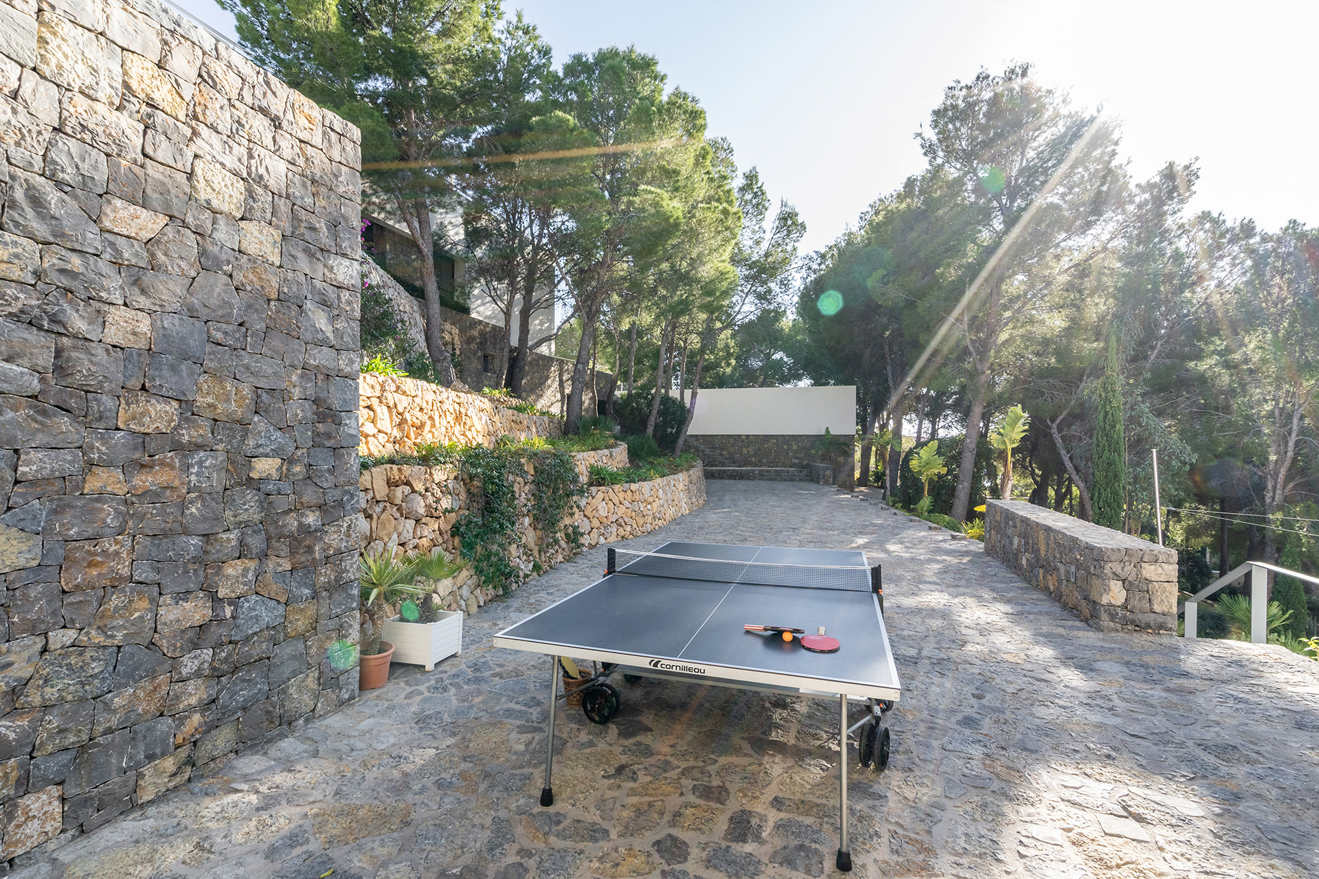Par quelques petites marches vous accéderez à une autre terrasse ou les pins vous offriront leur fraîcheur en été et indéniablement, par leur présence, vous transporteront.