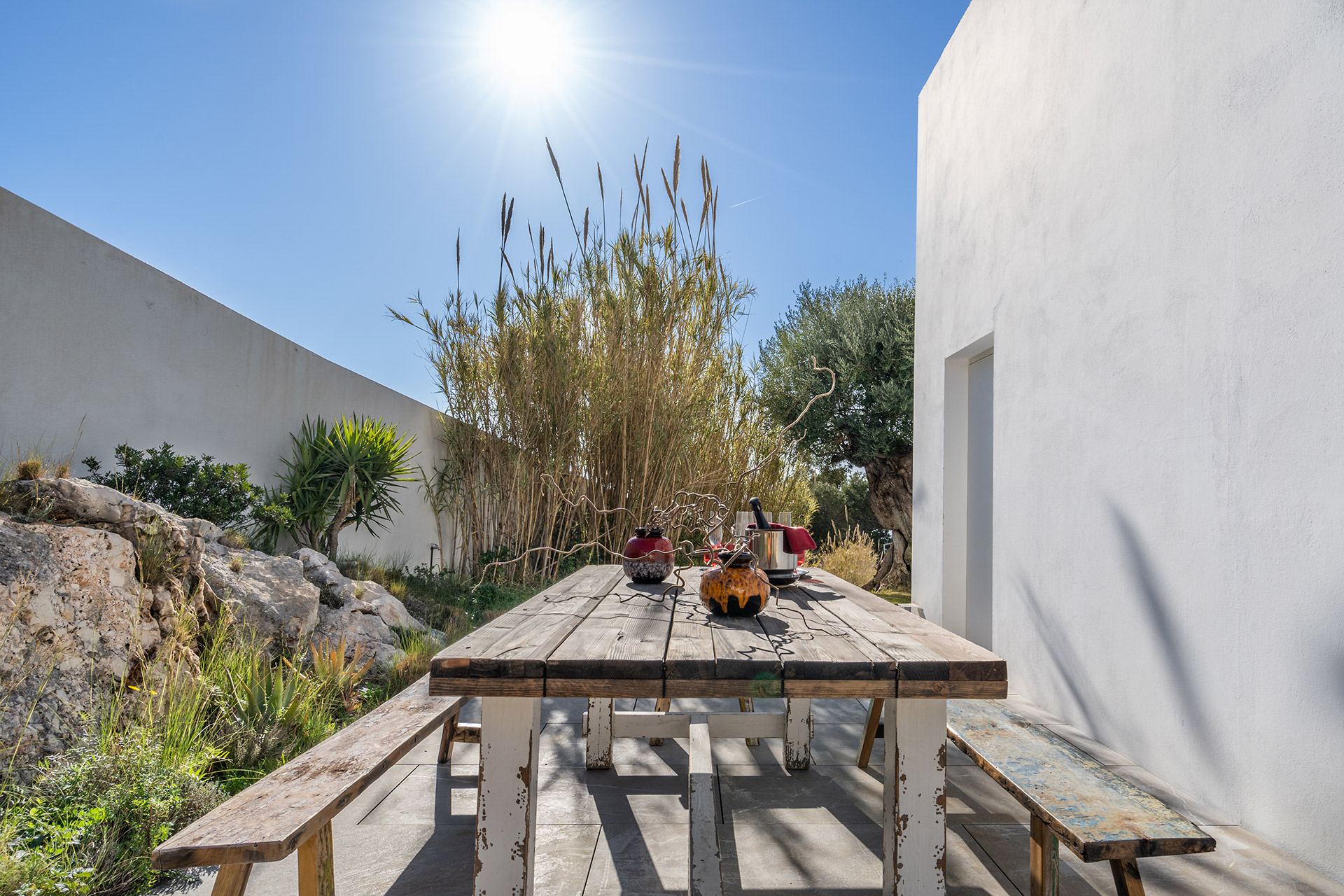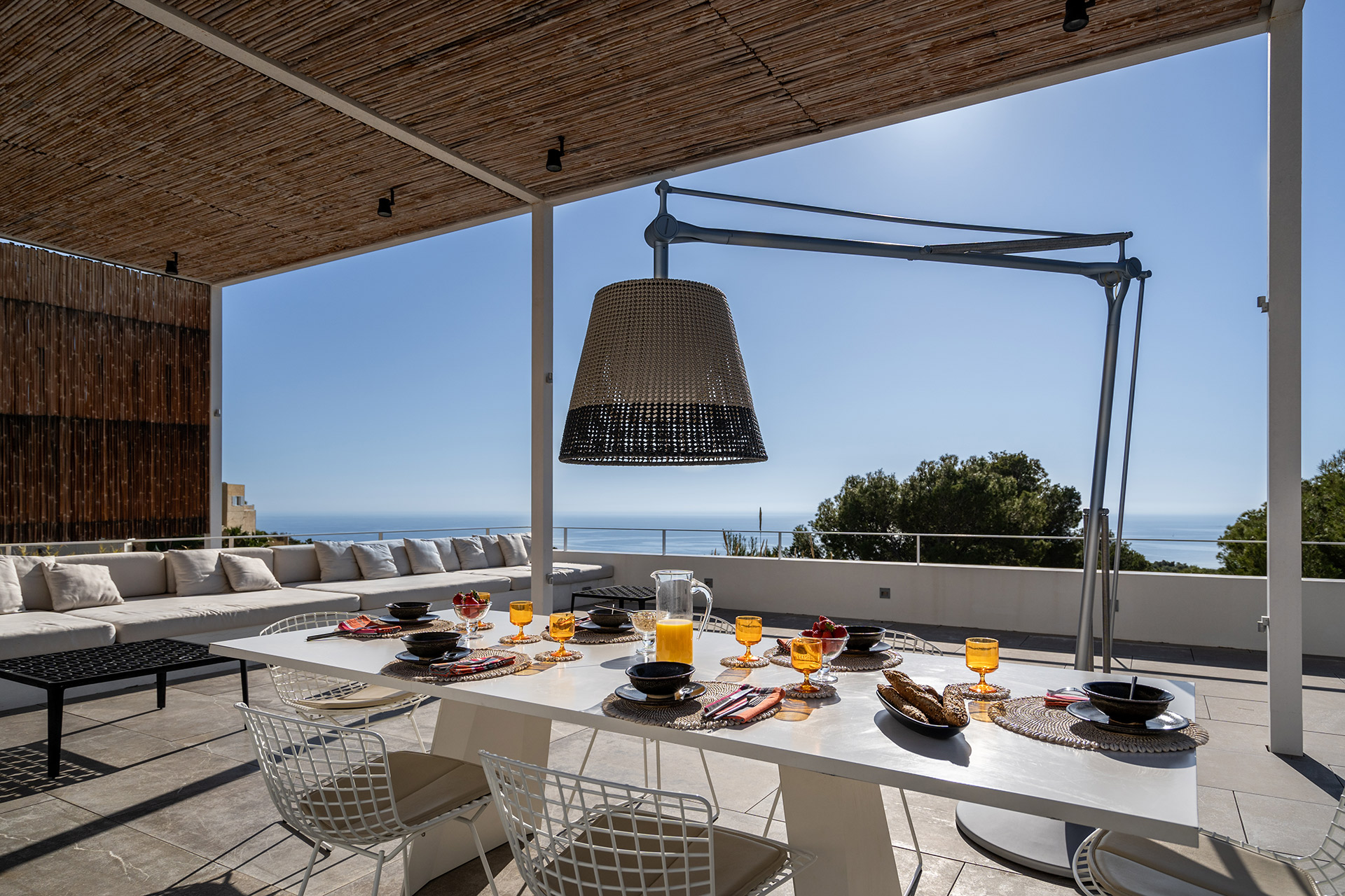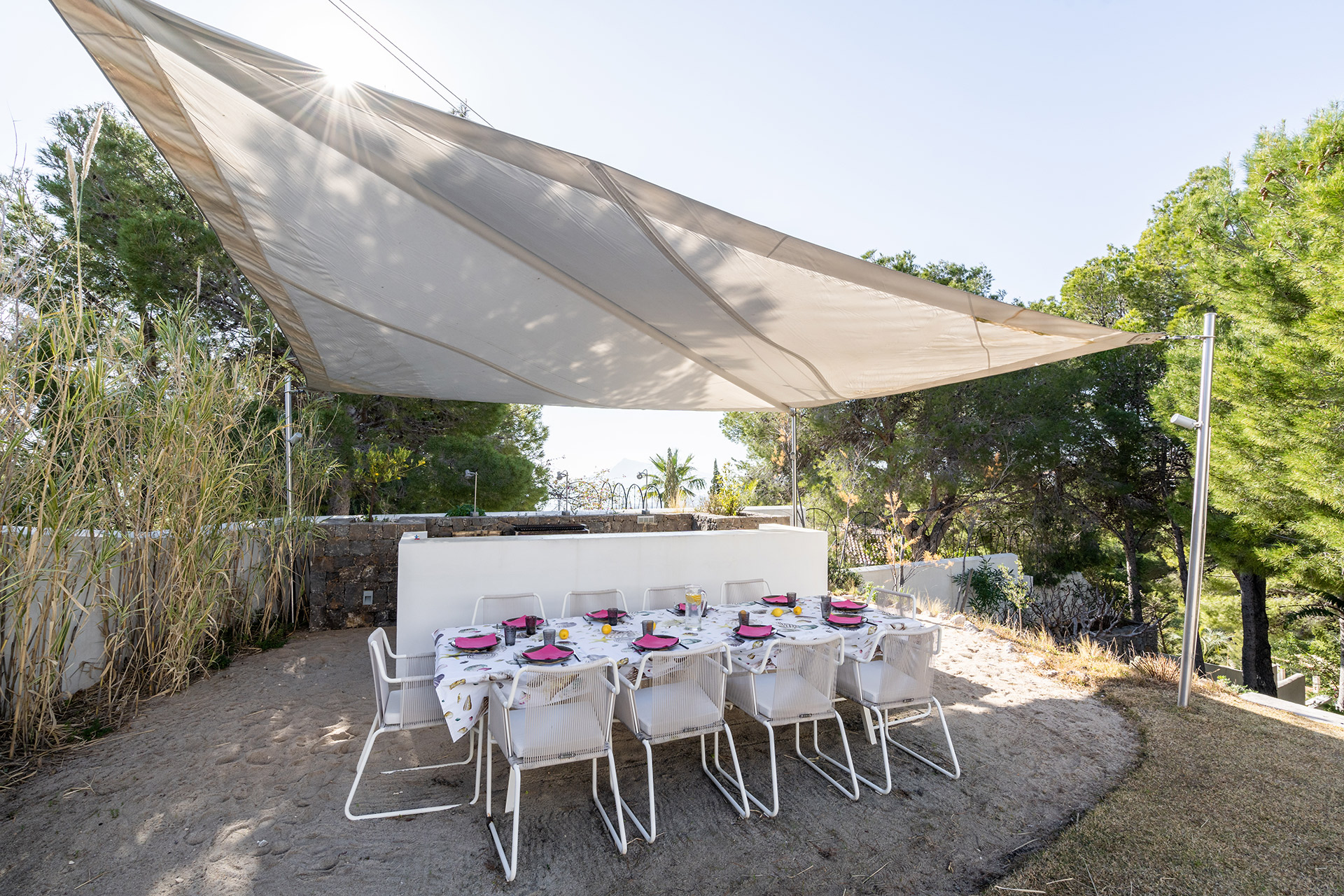 Pour vos repas en famille, nous avons crée une ambiance Chiringuito. C’est donc les pieds dans le sable, autour d’une grande table que vous pourrez prendre vos déjeuners.