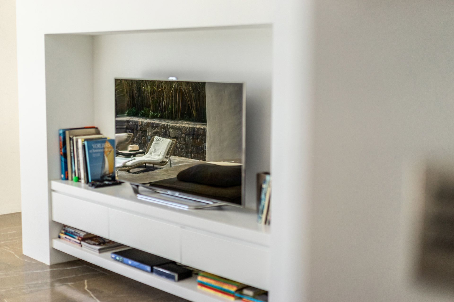 Salon avec appareil de musique avec télévision plasma