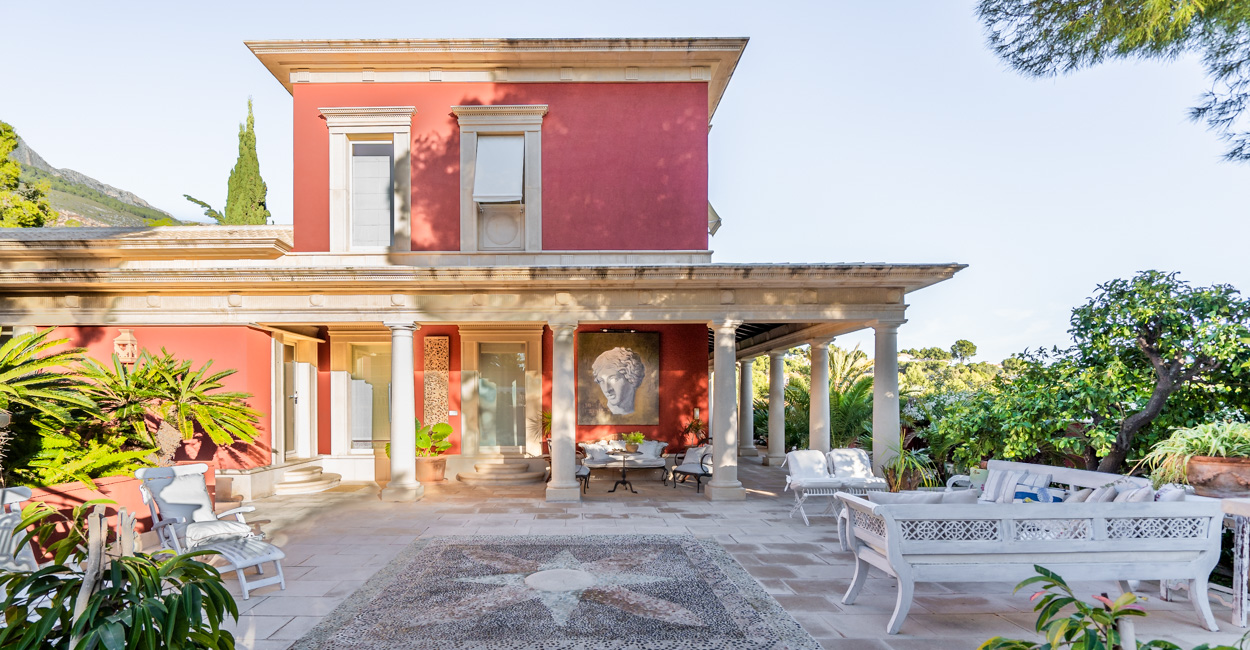 Belle propriété de style méditerranéen avec un splendide panorama sur les collines de la Sierra dans la région d’Altea. Ses colonnades donnent un style architectural unique.