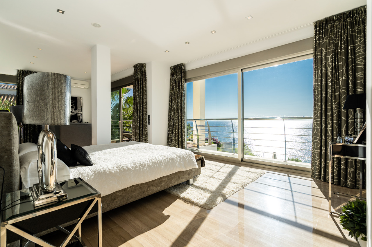 Chambre de Maître avec dressing, coin bureau, vue mer et Salle de bain en suite et Terrasse privative