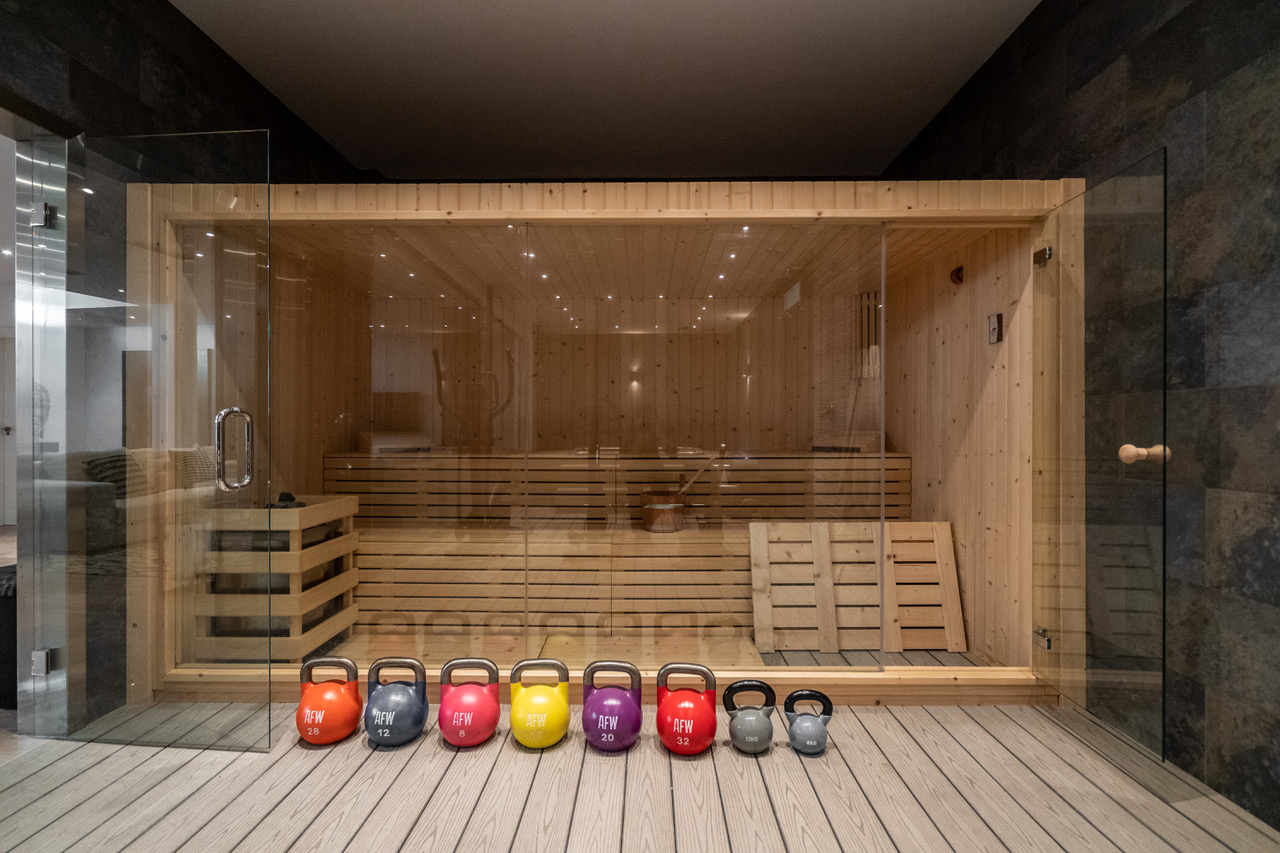 Salle de Gym avec jacuzzi, sauna, appareils de fitness