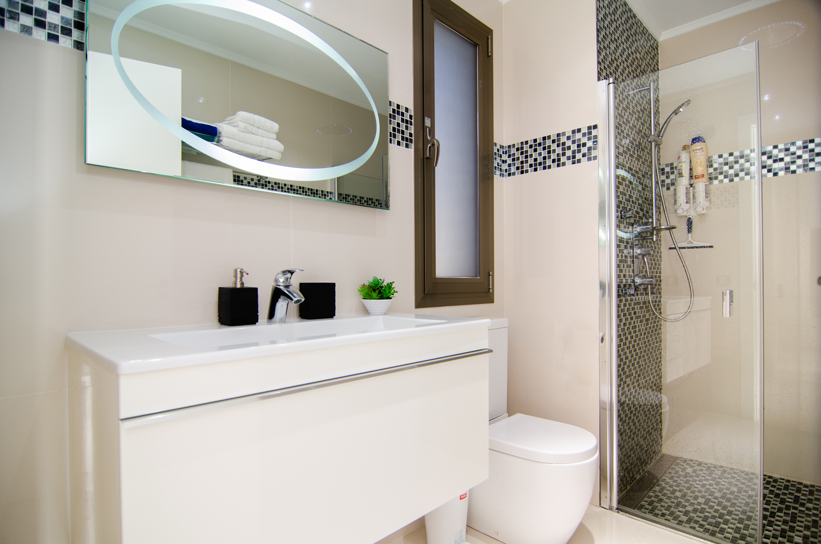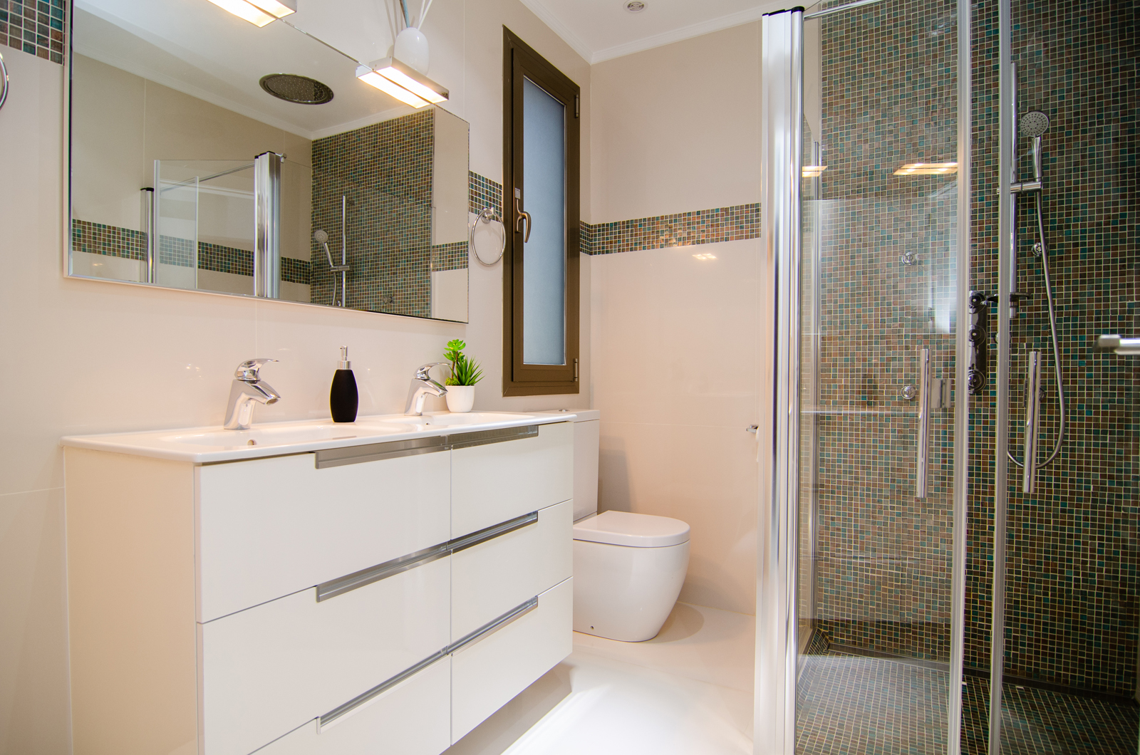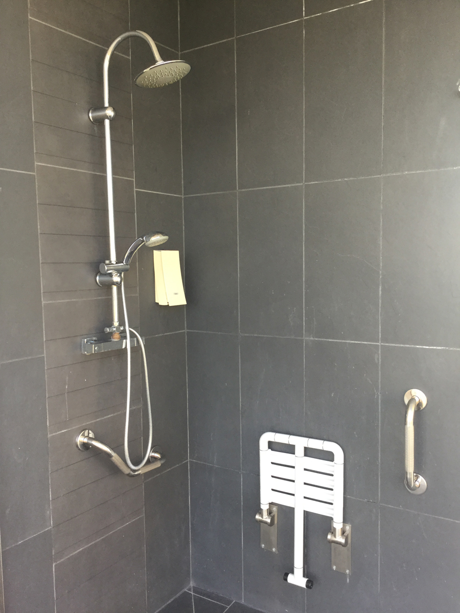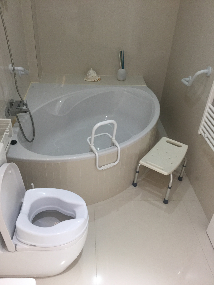 Salle de bain en suite adaptée pour les personnes à mobilité réduite et WC