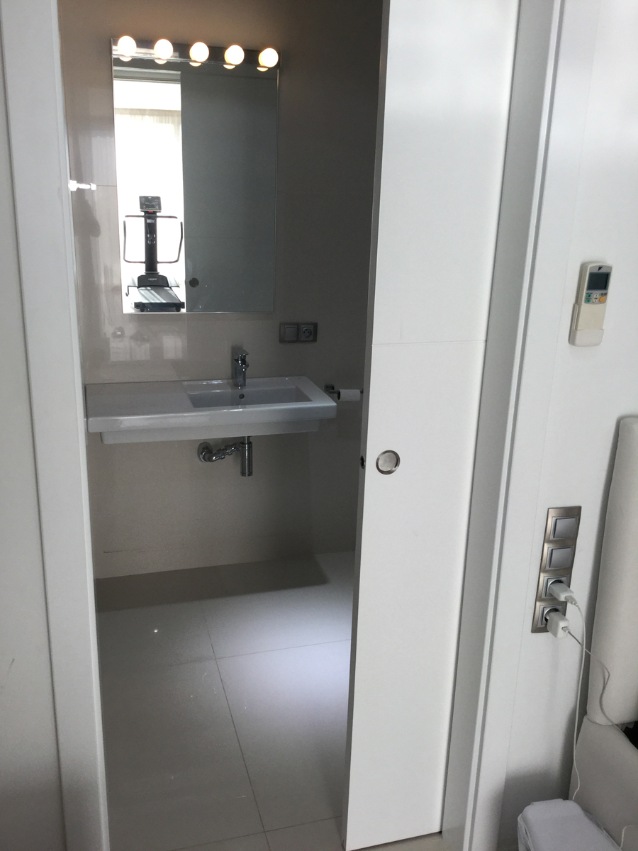 Le couloir est composé d'une grande bibliothèque / rangement ainsi qu'un mini bar.. Vous pouvez jeter vos linges sales directement par le local technique.