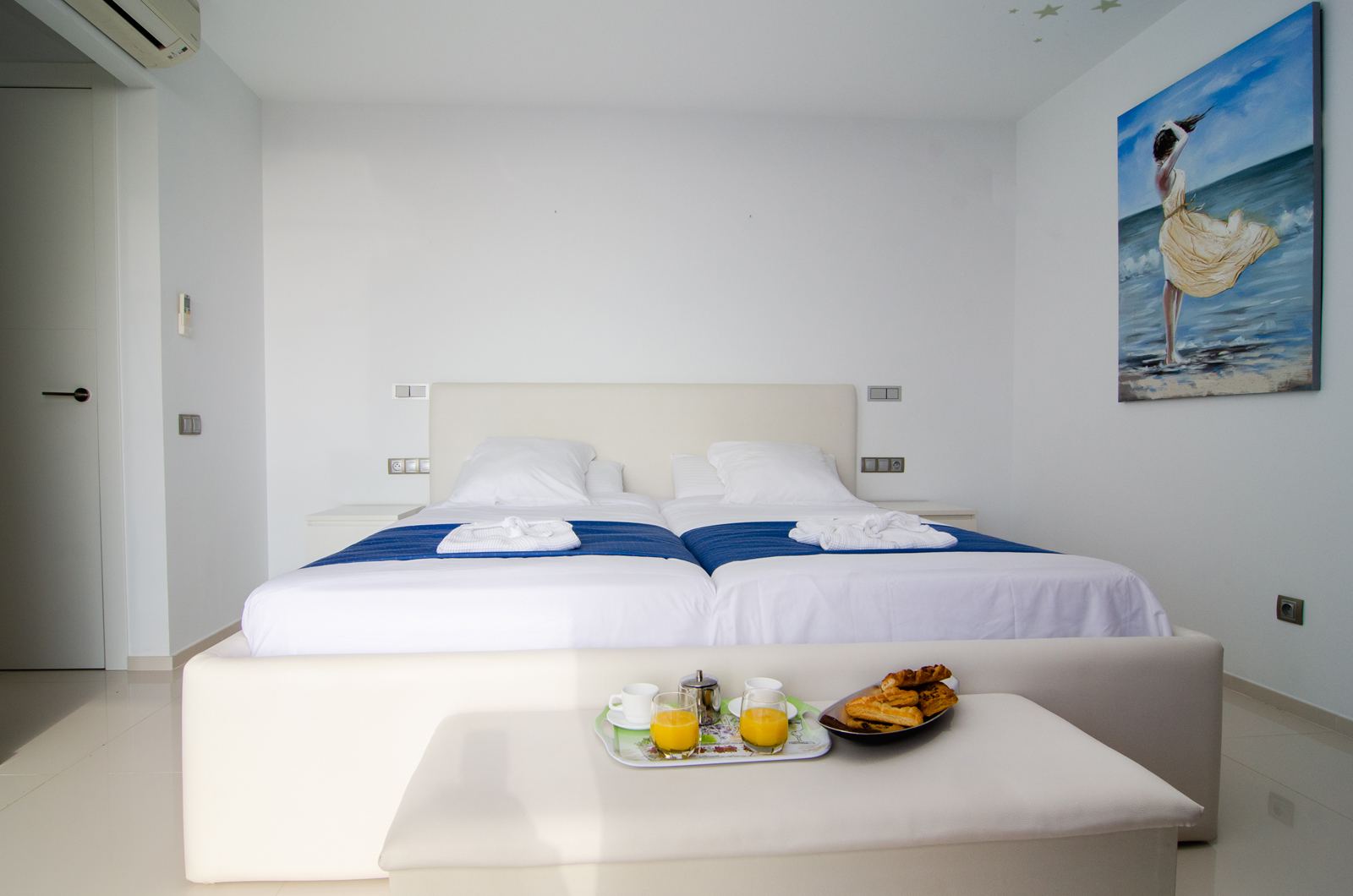 Chambre double avec lit 220x200cm avec dressing et Salle de bain en suite avec lavabo double, douche et WC
