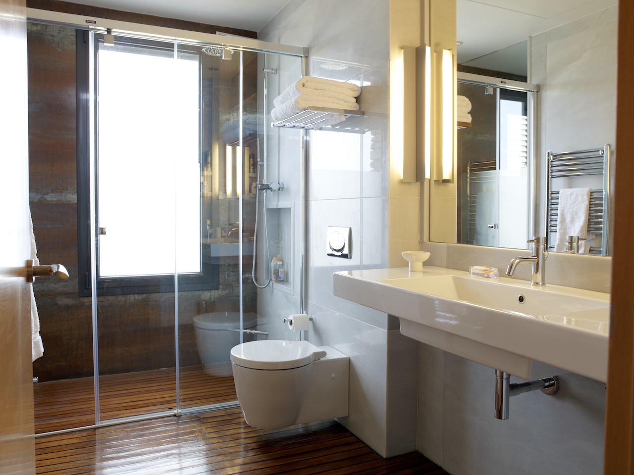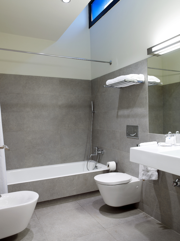 Chambre double n°8 : lit superking ou 2 lits jumeaux et Salle de bain en suite avec douche, baignoire