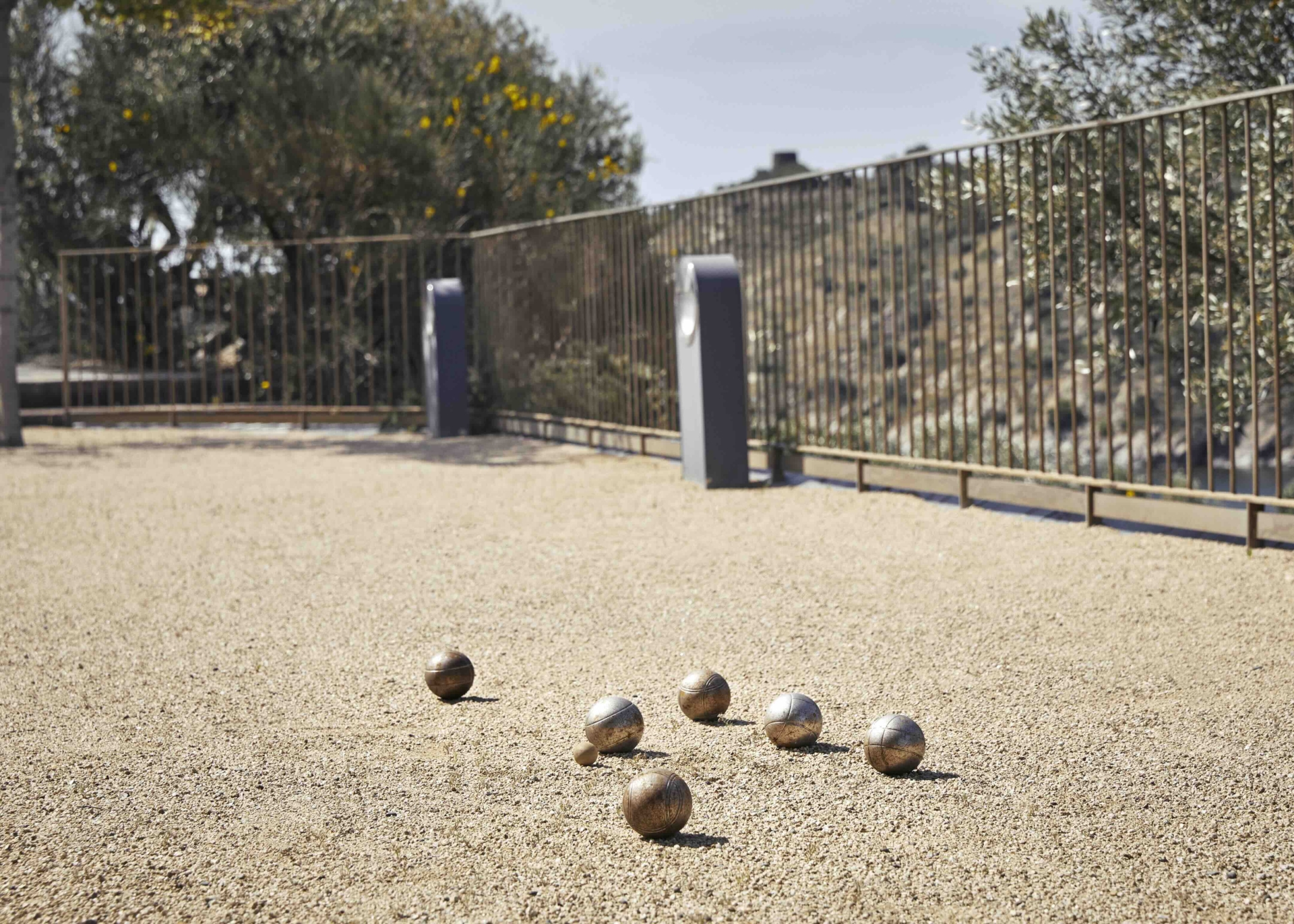 La grande terrasse avec patio propose un salon et un espace dînatoire avec barbecue construit. Il y a également une piscine à débordement avec jet d’eau, douche. Puis on peut descendre vers un boulodrome et un espace avec citronnier, rosiers et oliviers.