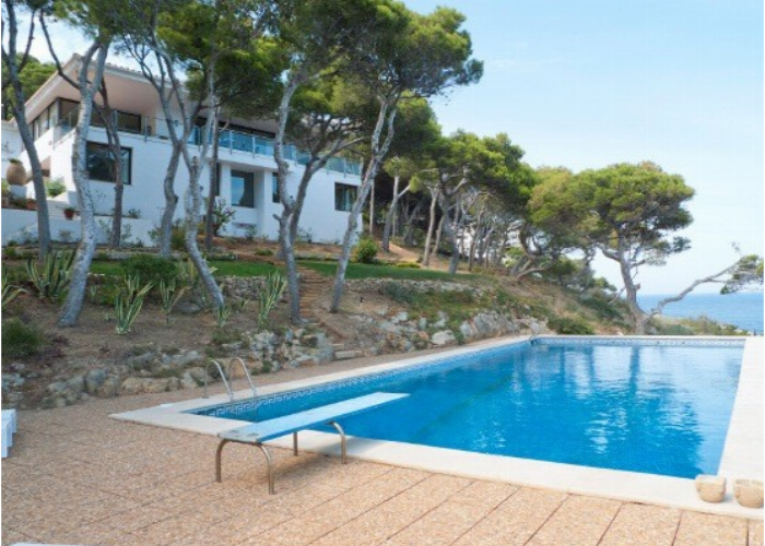 Villa unique en première ligne de front de mer avec de superbes vues sur la mer et la Costa Brava. Elle est située entre les plages de Sa Riera et Sa Tuna. Entourée par un grand jardin de 15000m2 avec une végétation méditerranéenne et de jolis arbre pins, elle dispose d’une piscine et d’un accès direct à une petite jetée privée ainsi qu’un accès au chemin côtier Cami de Ronda.