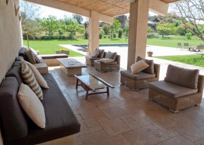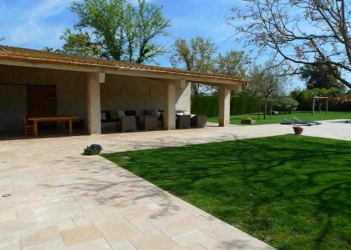 La maison dispose d’un grand jardin avec une grande piscine et un joli porche avec un salon extérieur confortable, un barbecue construit et une grande table pour profiter des repas al fresco. il y a également un espace pour se changer et un toilette invité.