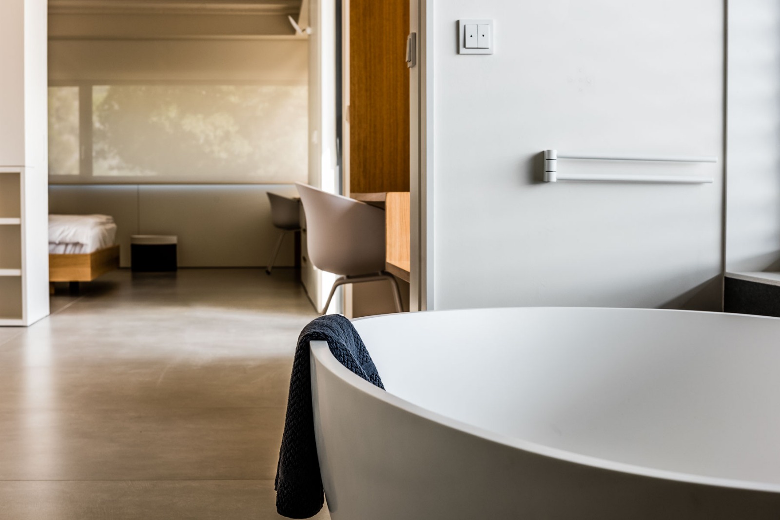 Chambre double et Salle de bain en suite avec baignoire et Terrasse