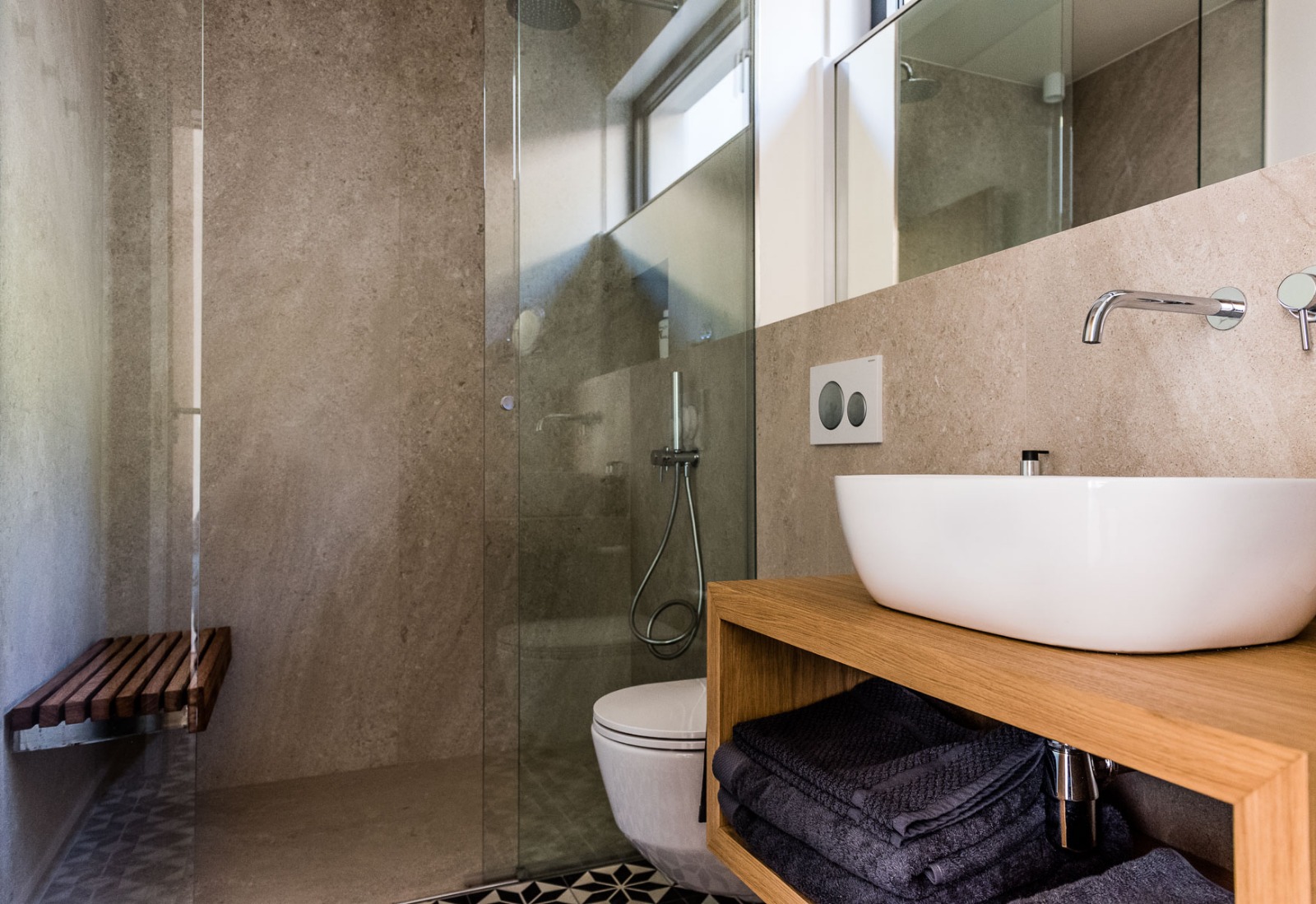 Chambre à lits jumeaux et Salle de bain en suite avec douche et Terrasse