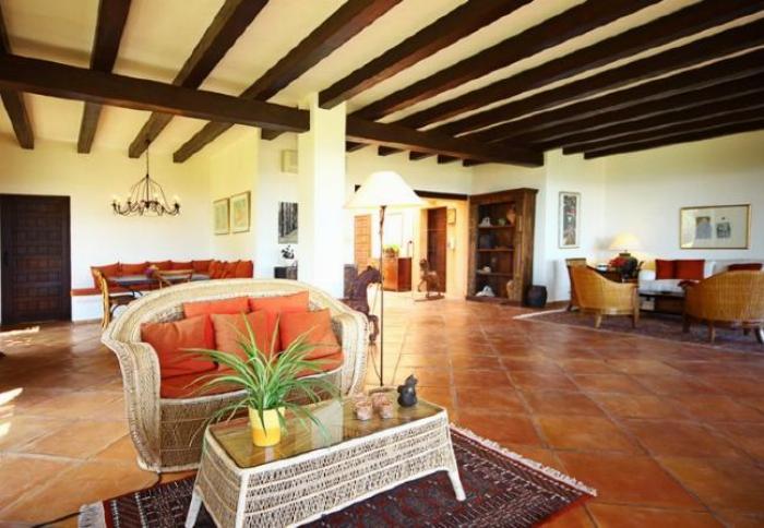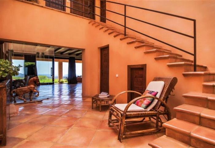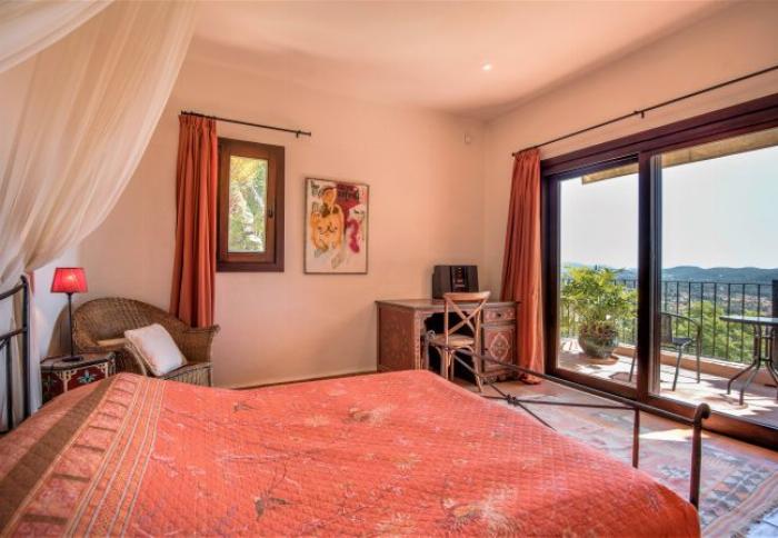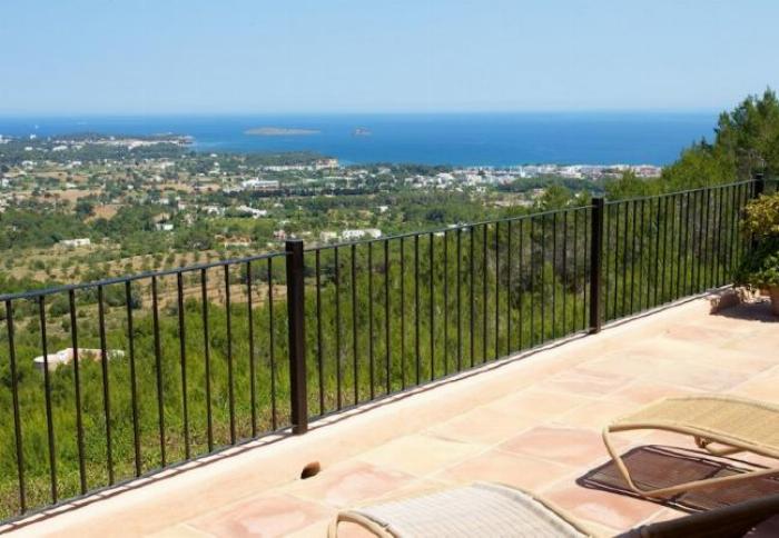 Cette maison de charme bénéficie d’une position dominante sur les hauteurs de Santa Eulalia. Cette ville est une destination balnéaire de choix pour les familles. En effet, cette partie de l’île est préservée du tumulte des nuits de fêtes d’Ibiza. Pour vos journées à la mer, la propriété est toute proche de la plage de Santa Eulalia, à moins de 10 minutes en voiture. Depuis celle-ci part la place principale de la ville, très vivante avec son marché d’été. Une jolie balade consiste à se rendre au Puig de Missa. En haut de cette petite colline se trouve une église avec une très belle vue sur la mer et la ville. Depuis le port, des bateaux vous emmènent à Ibiza, Formentera, ou encore au Hippy Market de Punta Arabi à Es Canar. Installé tous les mercredis d’octobre à mai dans une forêt de pins, il est l’endroit parfait pour trouver de beaux souvenirs à ramener de vos vacances à Ibiza.