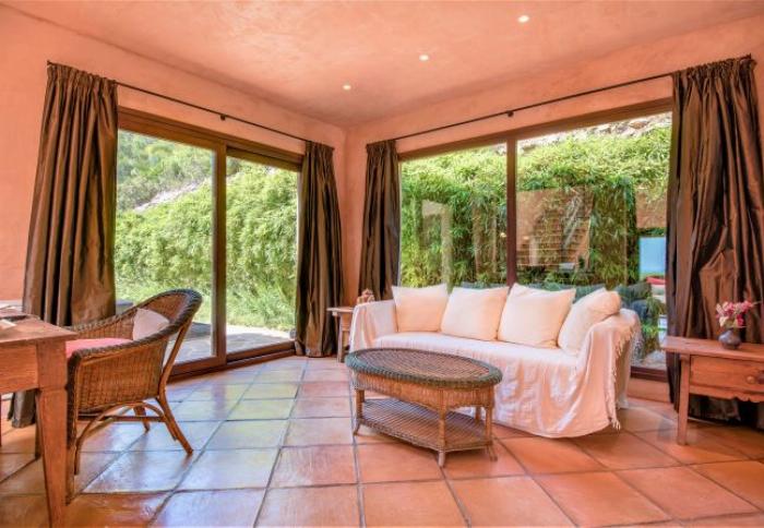 Cachée au sein d’une forêt de pins, dans un environnement calme de la côte nord d’Ibiza, cette villa de vacances bénéficie d’un cadre exclusif.