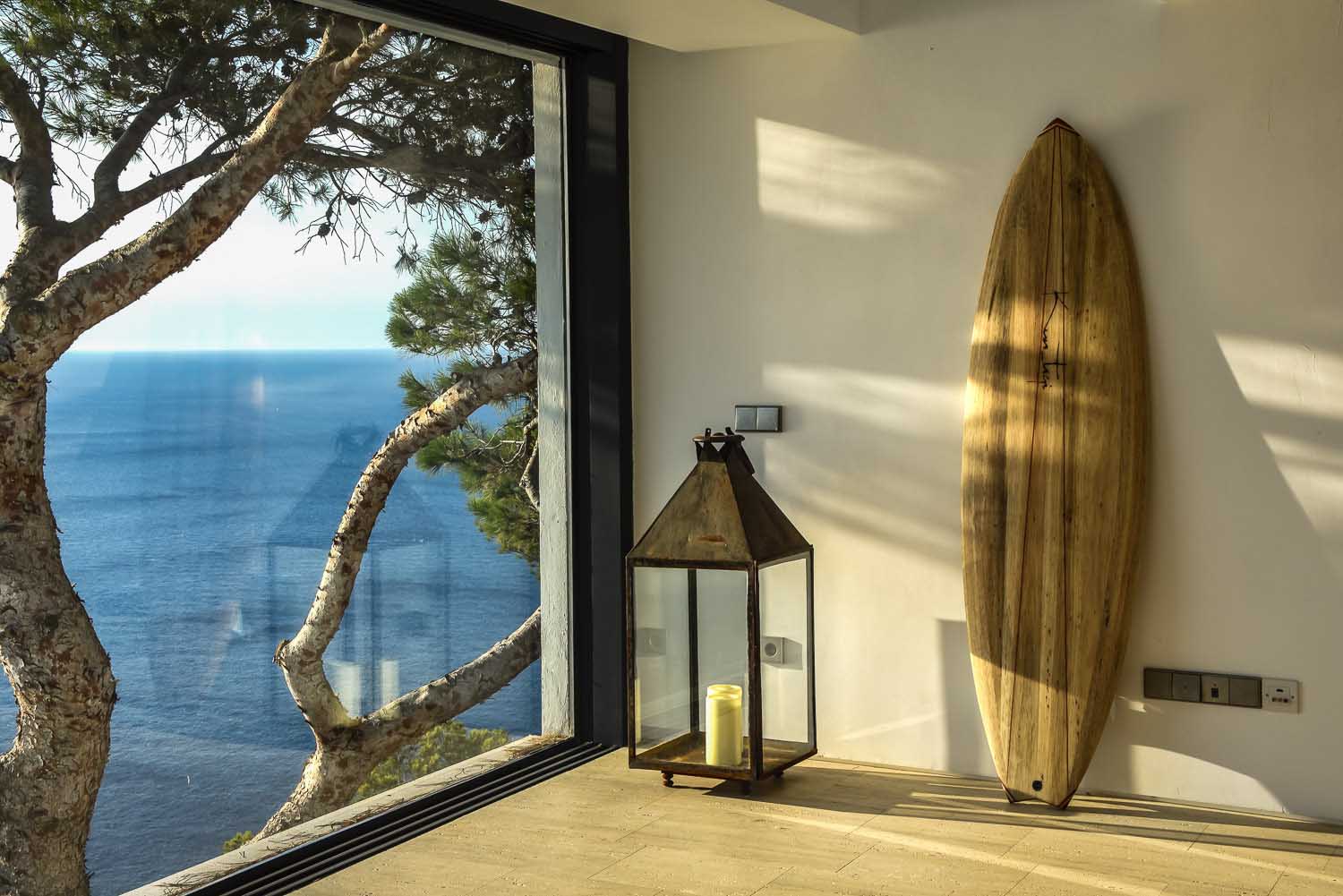 Cette luxueuse propriété est un parfait exemple de l’esprit d’Ibiza. Maison blanche aux lignes géométriques épurées, au milieu d’une nature sauvage et authentique, typique de la côte nord. Son environnement est composé de la mer à perte de vue et de reliefs verts et rocheux.