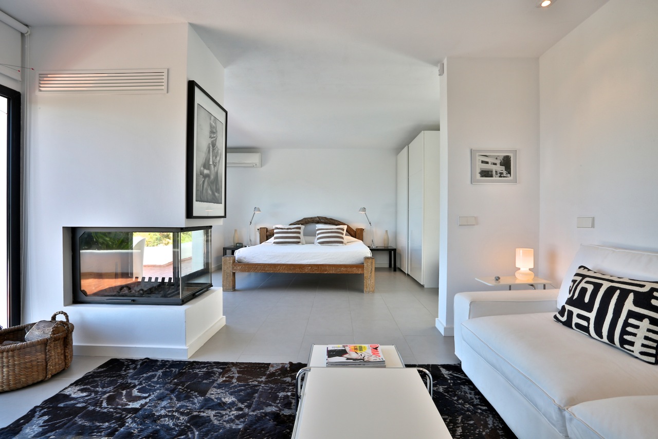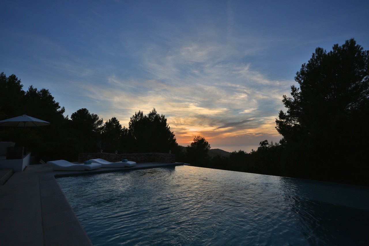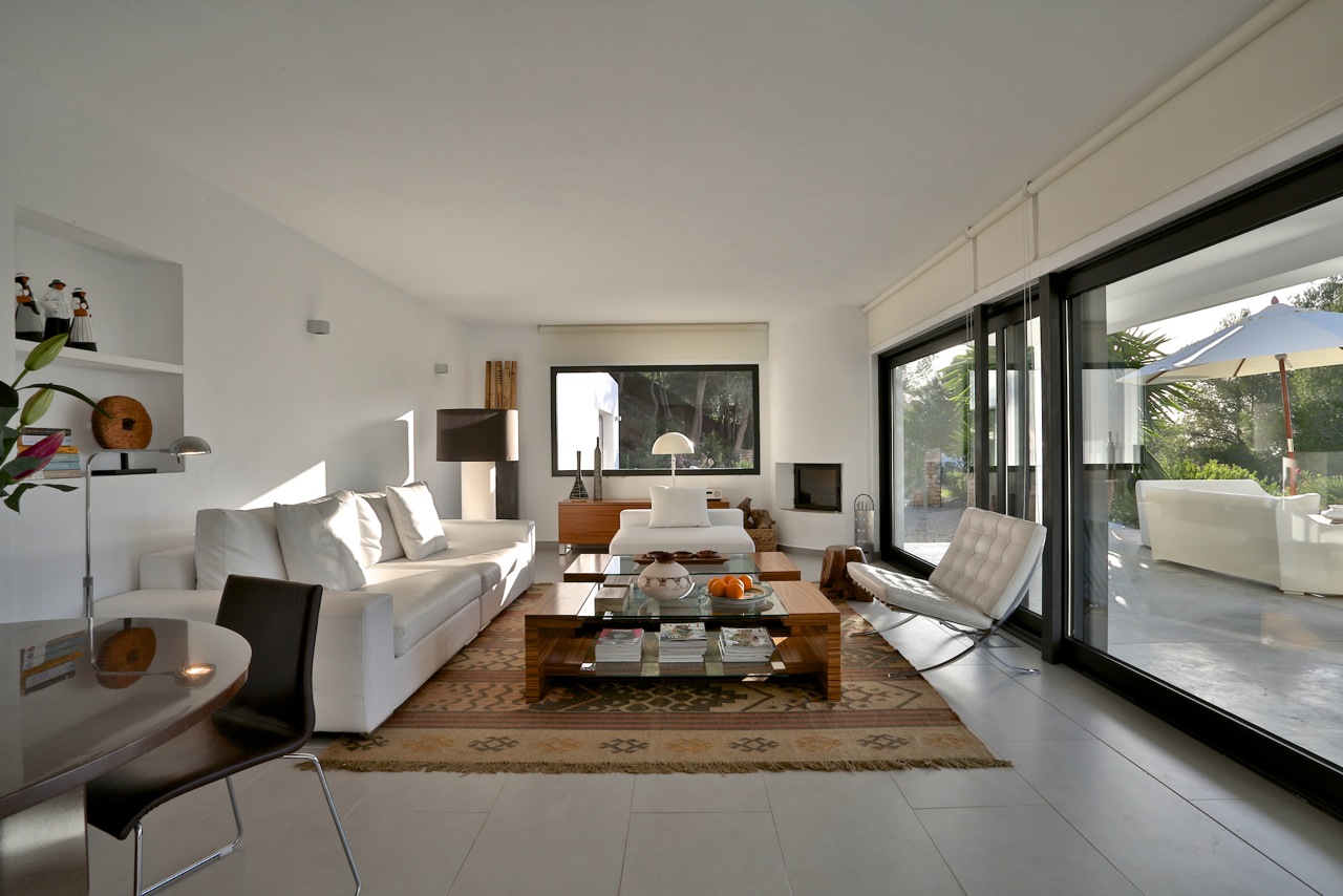 Cette villa contemporaine, conçue par un architecte espagnol de renom, est située dans un bois composé de pins et d'eucalyptus entre «Sant Josep de sa Talaia» et «Cala Tarida». La maison, de laquelle on a une vue panoramique sur le paysage d'Ibiza et la Méditerranée, est orientée plein ouest vers le coucher du soleil avec vue sur les iles de Conillera, S'Espartar et Es Vedrá. Ces vues imprenables sur la mer et son design haut de gamme font de cette résidence un délice. Deux espaces « chill-out » ont été aménagés pour admirer le coucher du soleil en plein air et une table ombragée par un treillis couvert de végétation offre un emplacement idéal pour les repas.