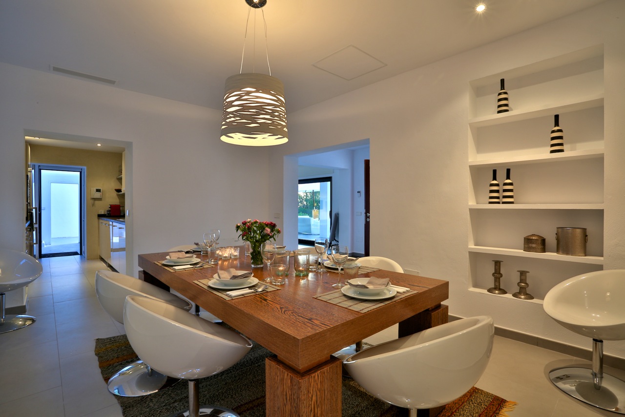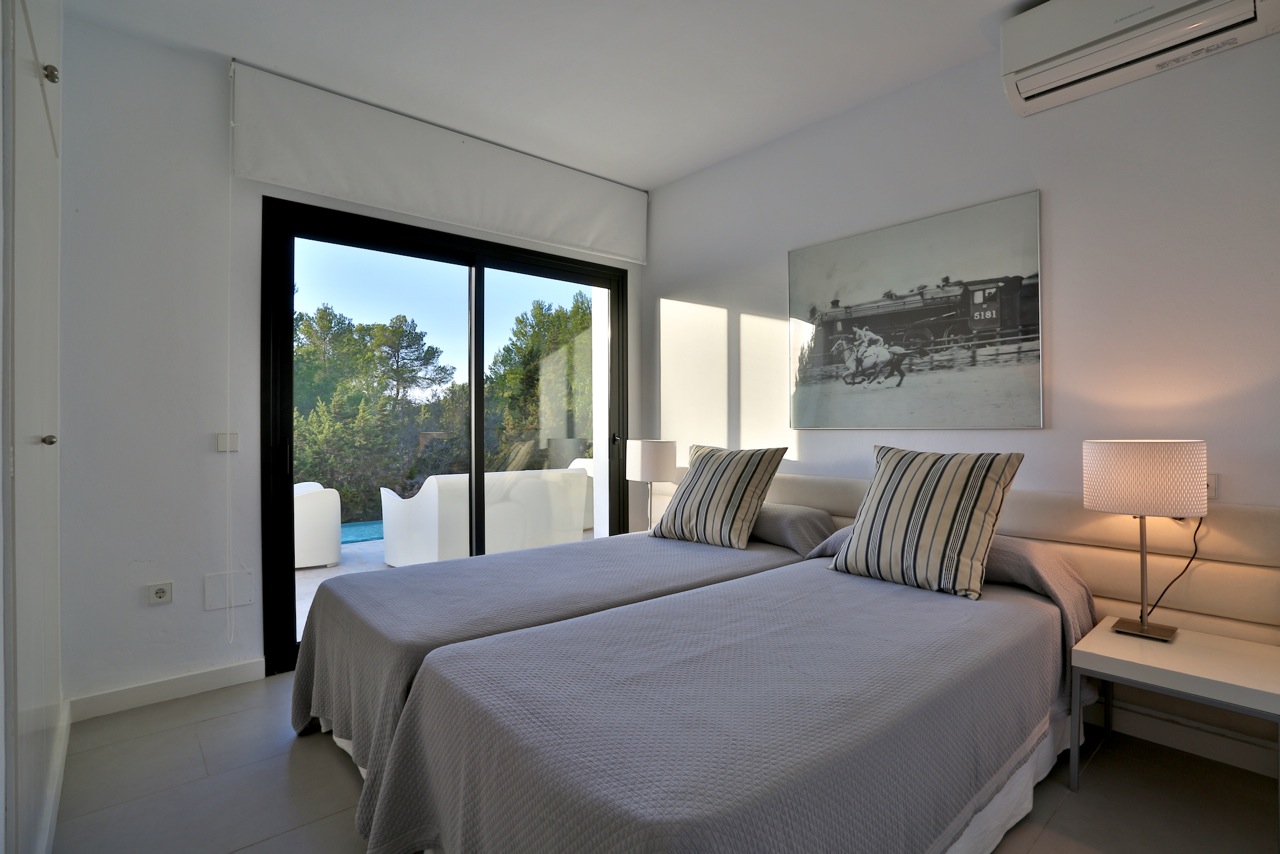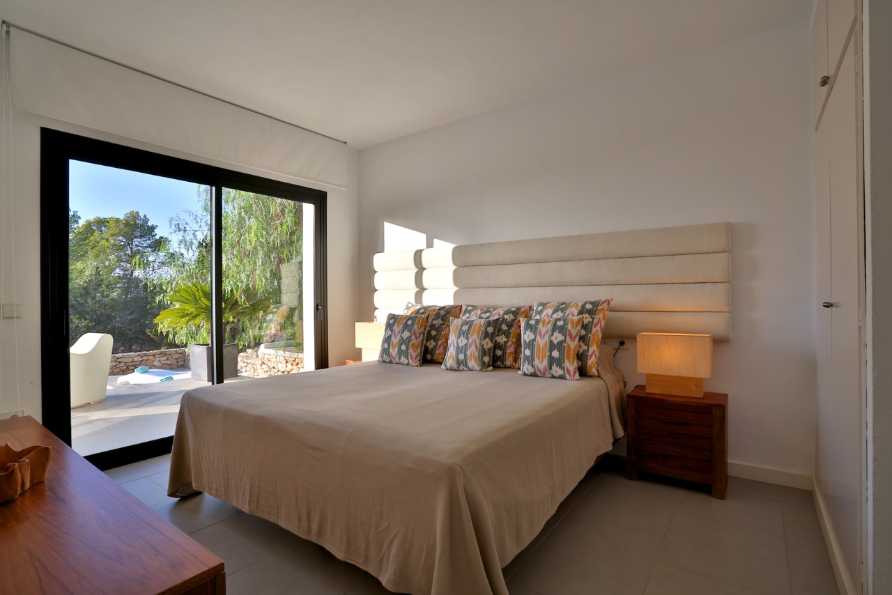 Cette villa contemporaine, conçue par un architecte espagnol de renom, est située dans un bois composé de pins et d'eucalyptus entre «Sant Josep de sa Talaia» et «Cala Tarida». La maison, de laquelle on a une vue panoramique sur le paysage d'Ibiza et la Méditerranée, est orientée plein ouest vers le coucher du soleil avec vue sur les iles de Conillera, S'Espartar et Es Vedrá. Ces vues imprenables sur la mer et son design haut de gamme font de cette résidence un délice. Deux espaces « chill-out » ont été aménagés pour admirer le coucher du soleil en plein air et une table ombragée par un treillis couvert de végétation offre un emplacement idéal pour les repas.