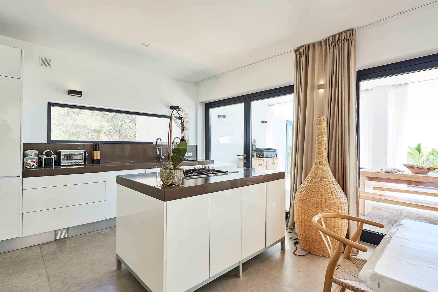 Cette villa moderne a été construite par un architecte de renom à Ibiza. Sa situation est idéale: proche d’Es Cubells, Ibiza n’est qu’à 11 km et le petit village de San Josep à 5 km. La plage de Cala Jondal s’offre à vous à 5,5 km de la propriété. Son positionnement au bout d’une allée sur une colline en fait un endroit privilégié pour son intimité et sa superbe vue sur la mer.