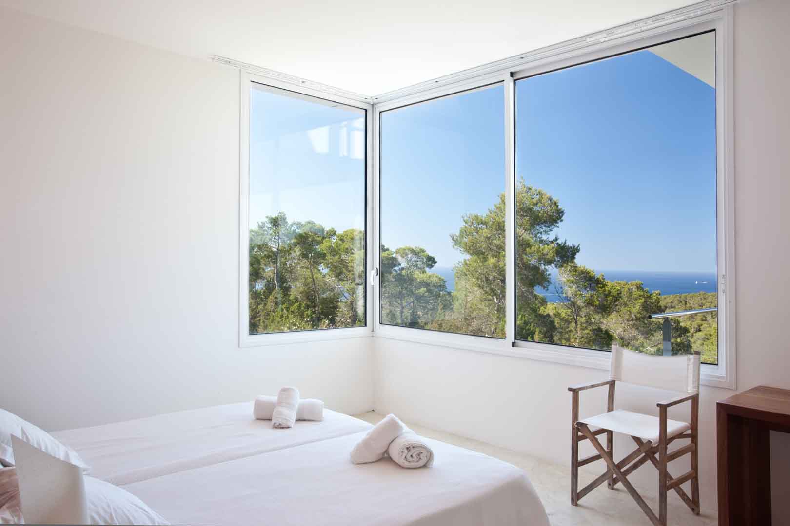 Idéalement située sur la côte ouest de l’île, la demeure est comme posée sur les hauteurs, à seulement 700 mètres de la côte. L’environnement arboré autour est naturel et bénéficie d’une végétation luxuriante. La superbe vue sur les collines alentours est imprenable. Mieux encore, la vue mer panoramique y est magnifique. Elle offre de somptueux coucher de soleil, à observer tous les soirs pour des vacances inoubliables. À moins de 10 minutes en voiture de plages de sable de renoms comme Cala Bassa ou Cala Conta, et à 15 minutes respectivement de Sant Josep et de Sant Antoni, la localisation de cette villa contemporaine est optimale. De nombreux bars, restaurants et tout type de commerces se trouvent même à moins de 5 kilomètres de la maison.