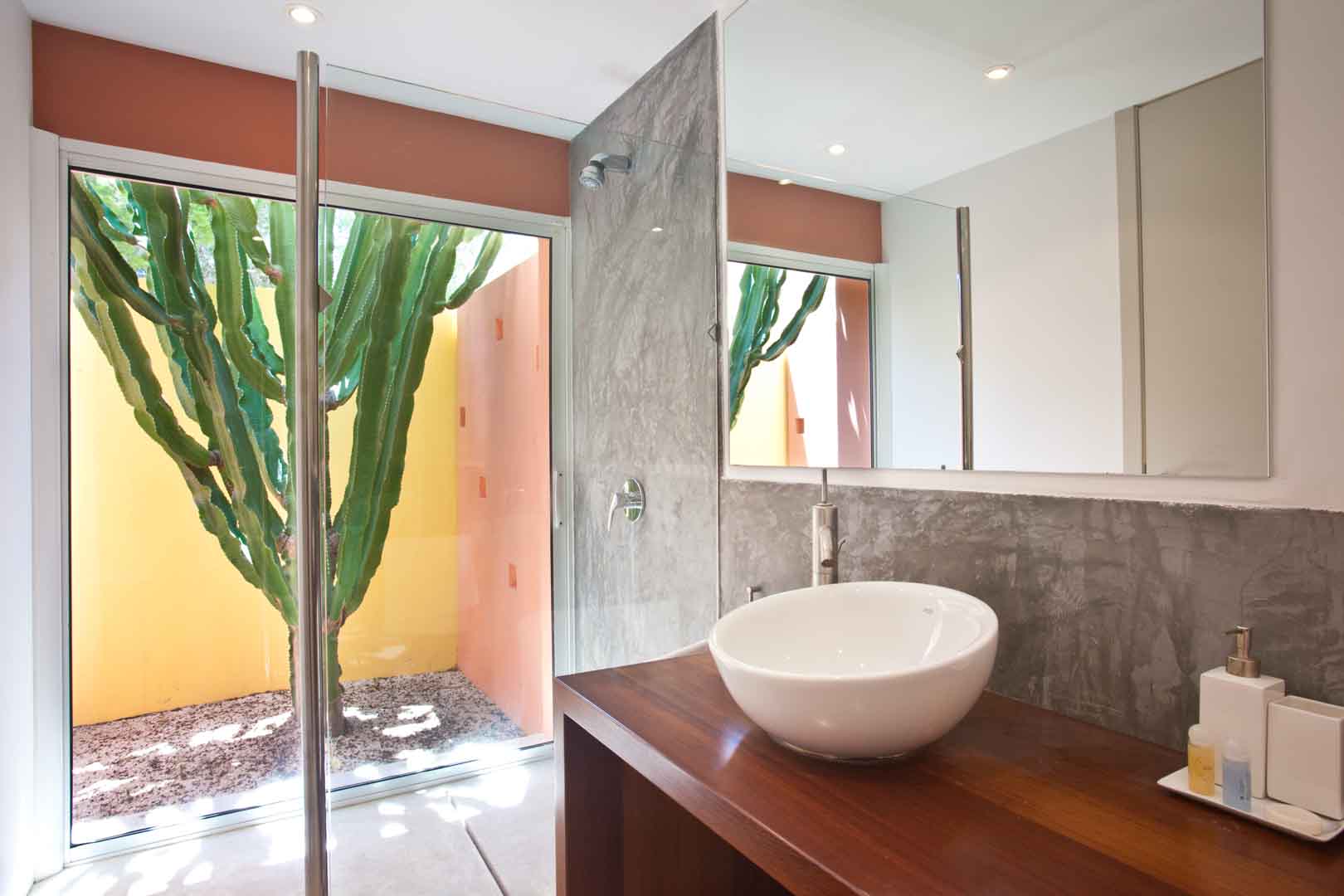 Avec ses 6 chambres et salles de bain toutes en suite, cette spacieuse propriété est accueillante tout en étant sobre dans sa décoration. Les intérieurs sont lumineux grâce aux nombreuses baies vitrées présentent. Pour vos repas, vous avez le choix entre la salle à manger intérieure et ses 10 places assises, ou bien celle de l’extérieur avec sa table pour 12 personnes. Située sur la grande terrasse couverte, celle-ci est parfaite pour profiter autant que possible du bonheur de pouvoir manger dehors à tout instant de la journée. Sa piscine privée et ses transats s’ajoutent à l’aménagement de cet endroit pour des vacances de rêve.