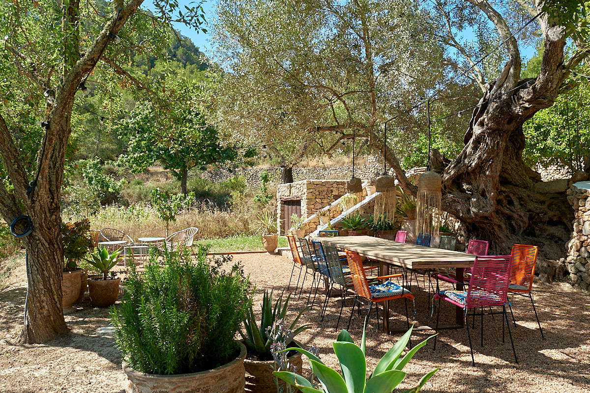 Les deux unités de la Finca donnent sur la terrasse centrale, qui dessert les différents espaces extérieurs aménagés pour profiter au maximum du beau temps des îles Baléares. De nombreuses terrasses sont éparpillées un peu partout sur le grand terrain. Diverses tables ont été installées en extérieur autour de la maison, ce qui vous permettra de choisir votre endroit préféré selon vos envies et le moment de la journée. Pour vous détendre, un coin salon couvert avec canapés et fauteuils ou les transats autour de la piscine feront votre bonheur. Le grand bassin de 14 x 6 mètres est idéal pour faire des longueurs ou se rafraîchir tout au long de la journée. Autour de celle-ci, vous pourrez observer la campagne et les vertes collines environnantes.