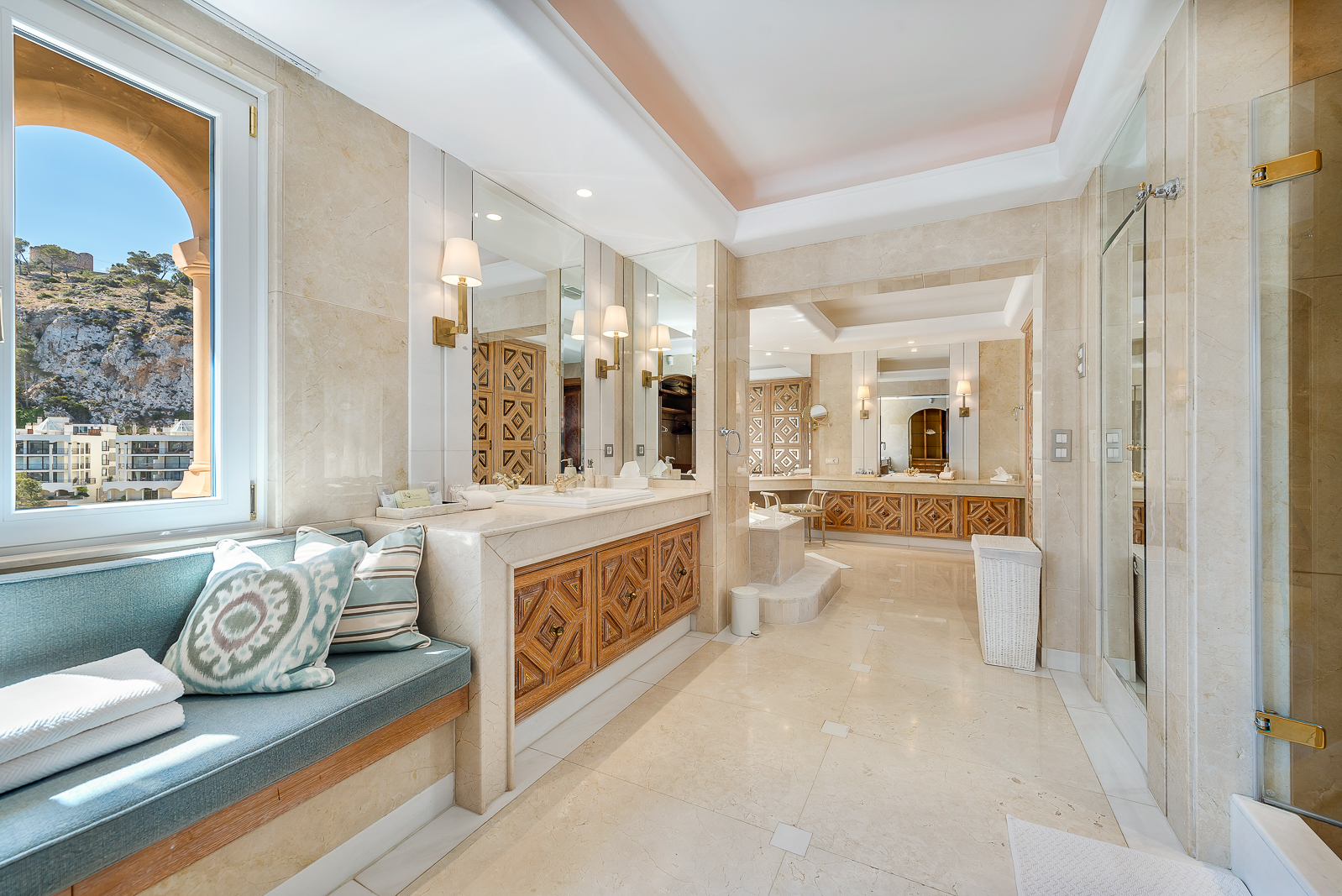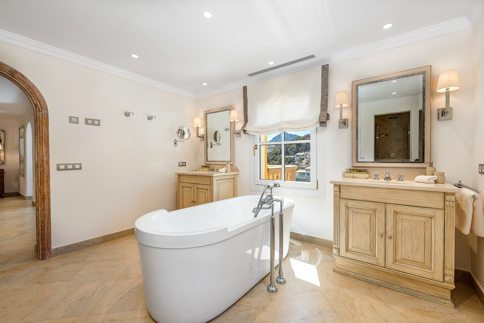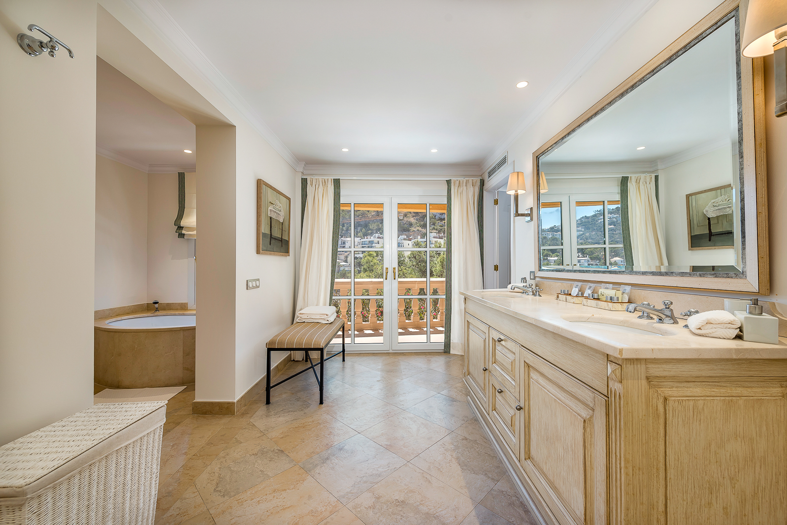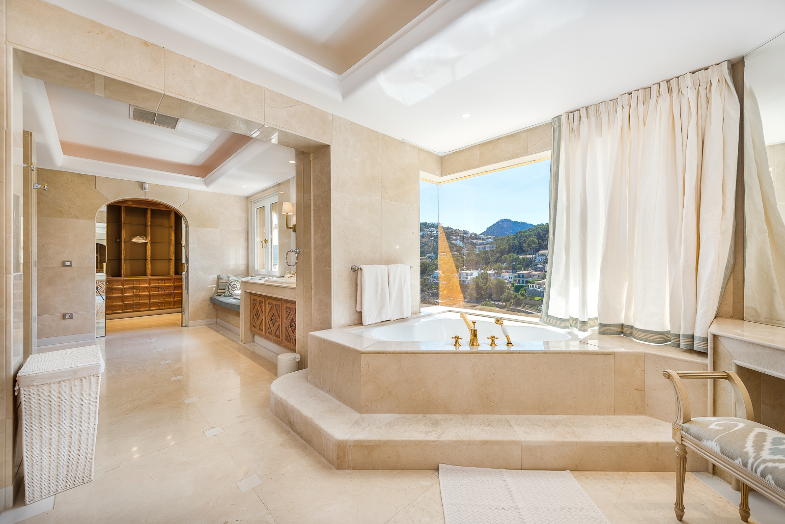 Cette villa haut de gamme offre une vue panoramique sur la mer, le paysage montagneux de la Tramuntana et Puerto d’Andratx. Lors de vos journées en bateau, les endroits à explorer sont nombreux. Petites criques alentours ou île de Sa Dragonera, vous y trouverez des eaux turquoises et transparentes pour vous baigner. Port d’Andratx, au sud ouest de l’île, est une destination idéale avec de nombreux restaurants, bars et boutiques. L’endroit est bouillonnant de vie, aussi bien de jour comme de nuit. Depuis la piscine privative ou le jacuzzi, observez la moderne marina de ce port de charme avec ses reliefs en arrière plan.