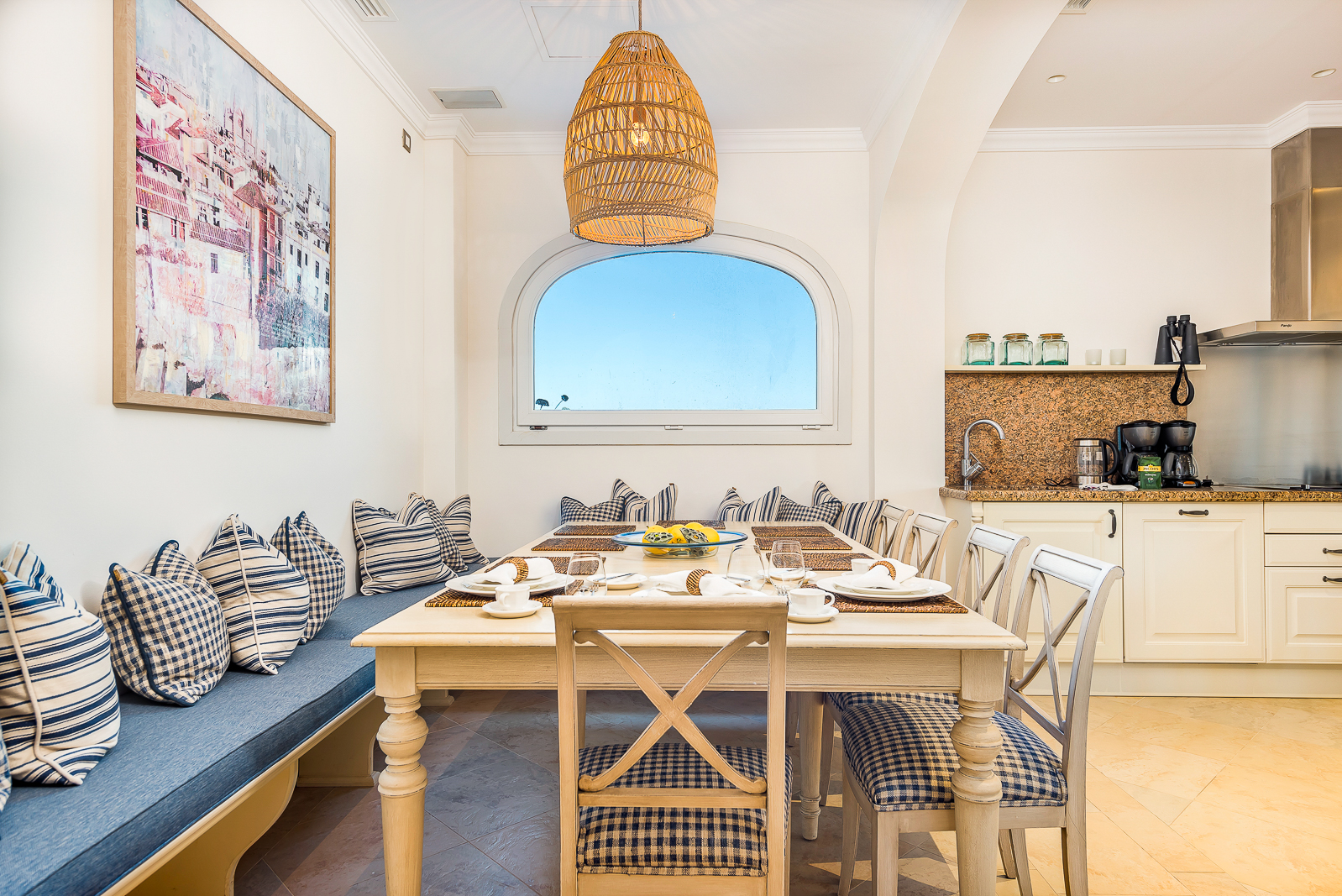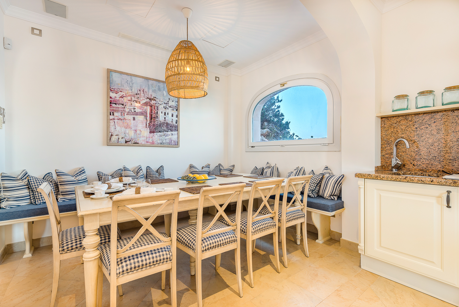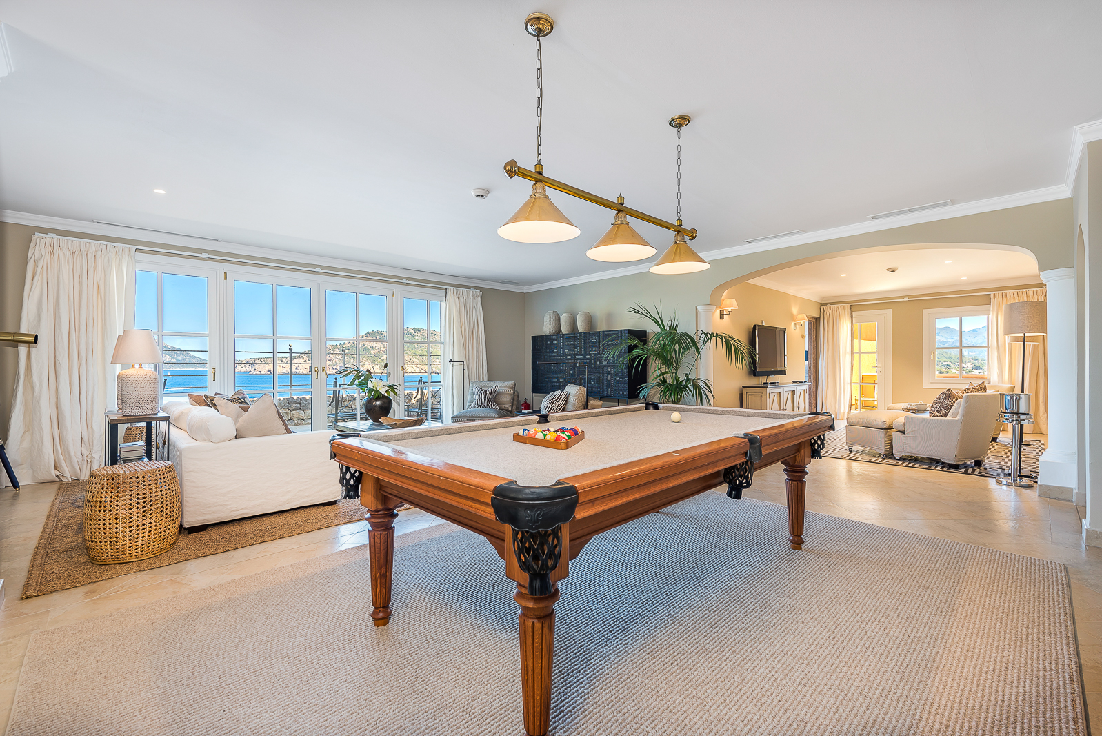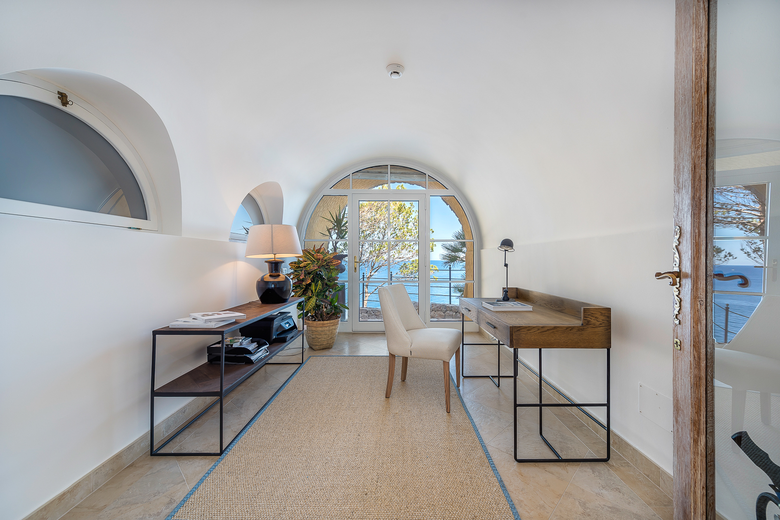 Cette maison de prestige accueille les groupes jusqu’à 12 personnes, dans 6 suites confortables, toutes avec salle de bain en suite. Une fois passé la porte d’entrée, découvrez des espaces spacieux, dotés d’une décoration élégante et raffinée. Confort et haut standing sont ici les maîtres mots. Salle de sport, jacuzzi, sauna, piano, billard sont à votre disposition. A l’extérieur, le jardin méditerranéen s’étend sur différents niveaux et apporte de la verdure au paysage rocheux environnant. La piscine privée longe la terrasse principale et vous amène au bar donnant sur le bassin, pour déguster une boisson fraîche avec vue imprenable. Parcourez les nombreuses terrasses aménagées afin de choisir votre endroit préféré pour admirer la mer. Pour des moments exclusifs, vous trouverez à l’arrière de la maison, une petite grotte dans la roche qui vous permettra de vous échapper et de vous isoler pour observer des couchers de soleil inoubliables.