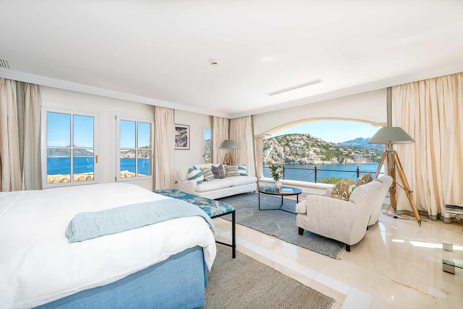 Sur les hauteurs de Port d’Andratx à Majorque, perchée sur la roche, se trouve l’une de nos plus belles villas de luxe.