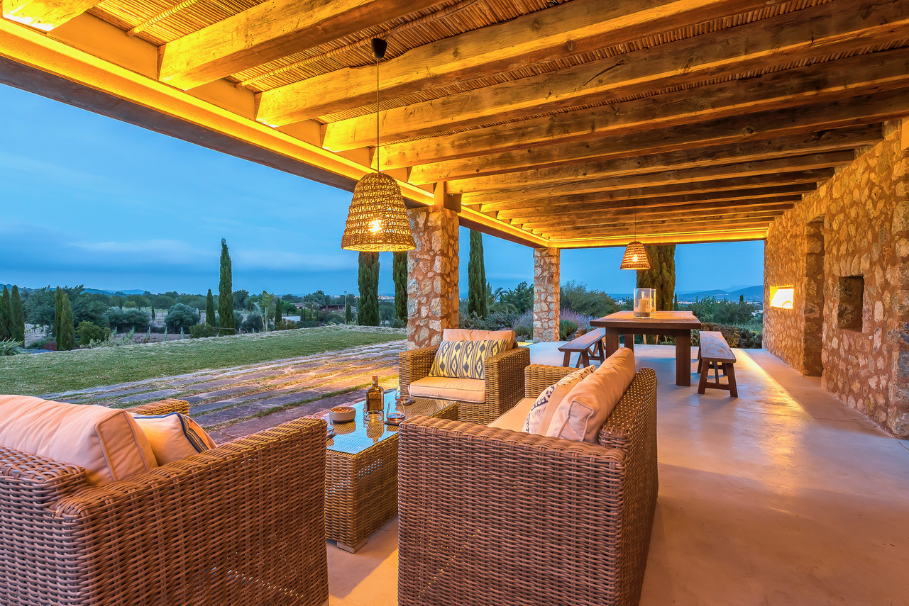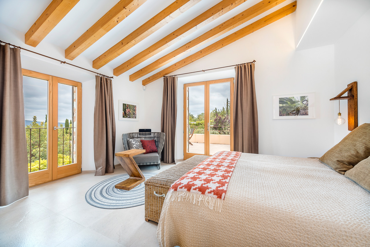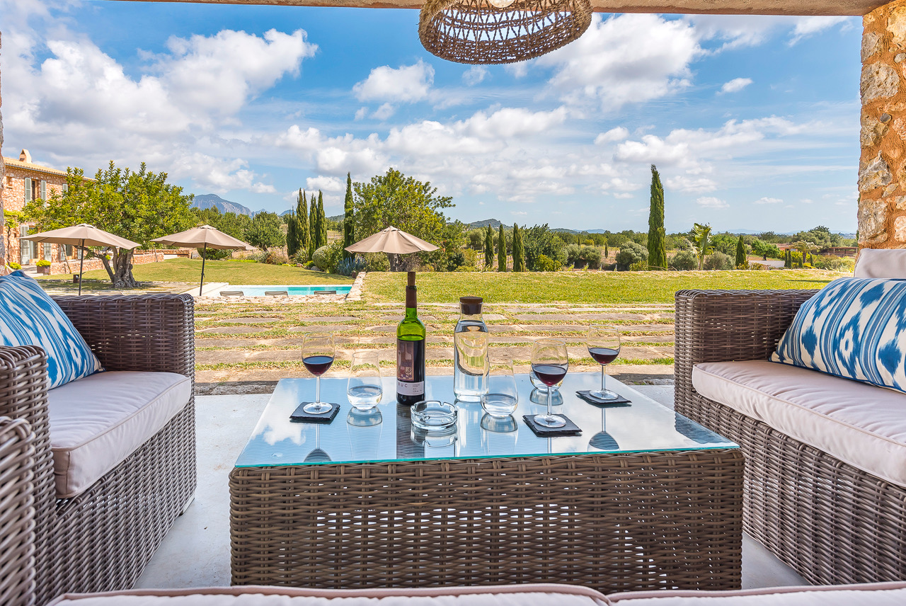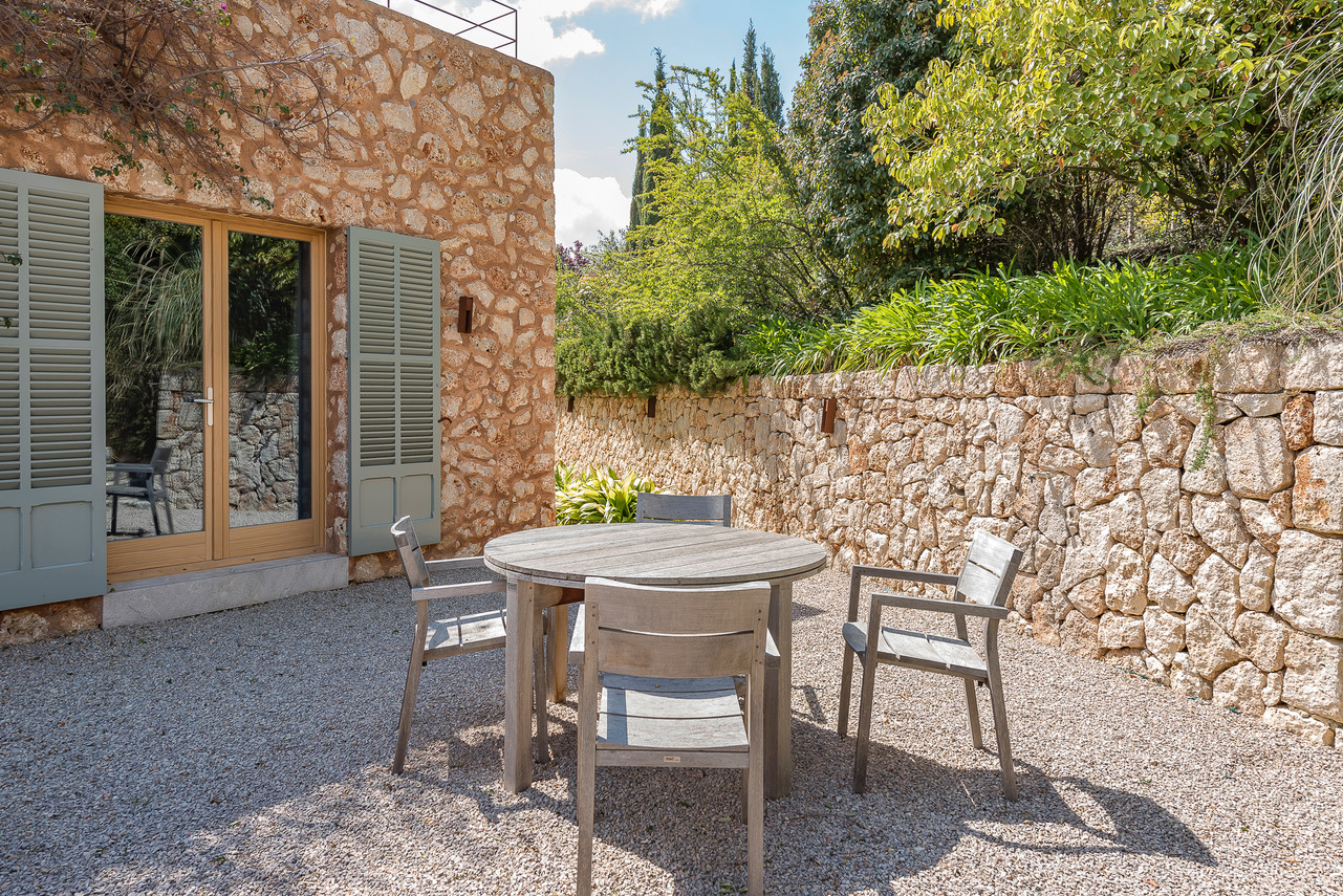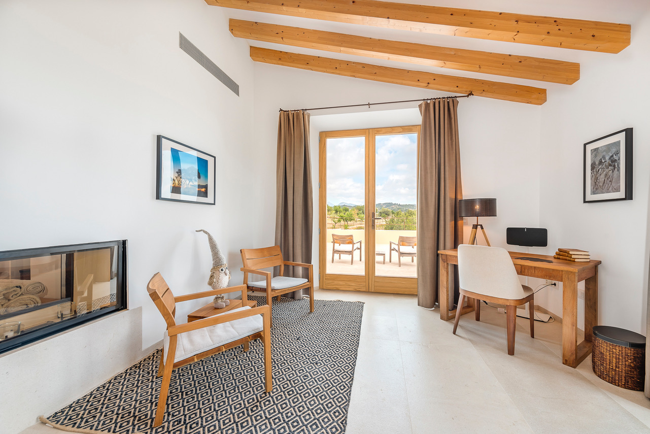 Cette récente Finca de 600 m2 a été construite en alliant parfaitement tradition et modernité. La pierre naturelle des murs extérieurs, que l’on retrouve dans certaines pièces intérieures, donne un c ôté authentique. Les équipements et la décoration que l’on trouve aussi bien dedans que dehors sont modernes et confortables. Les groupes de 10 personnes sont parfaitement à leur aise ici gr âce aux 5 chambres qui disposent toutes de leur propre salle de bain. La chambre de ma ître est un cocon idéal pour les couples : canapé, télévision, terrasse privative ou encore belle baignoire, tout a été pensé pour profiter au maximum de cette pièce. Différents espaces détentes ont été aménagés dans la villa avec un coin salon avec cheminée ou encore un autre avec télévision. Les grandes baies vitrées laissent grandement entrer la lumière et permettent d’observer la verte vue sur le jardin. La salle à manger avec sa large table tout comme la grande cuisine donnent sur une belle terrasse couverte. On peut y manger à l’ombre tout en utilisant le barbecue, ou profiter d’un verre sur les canapés et fauteuils. Une salle de sport très bien équipée est à votre disposition pour vous permettre de maintenir votre forme, même loin de chez vous.